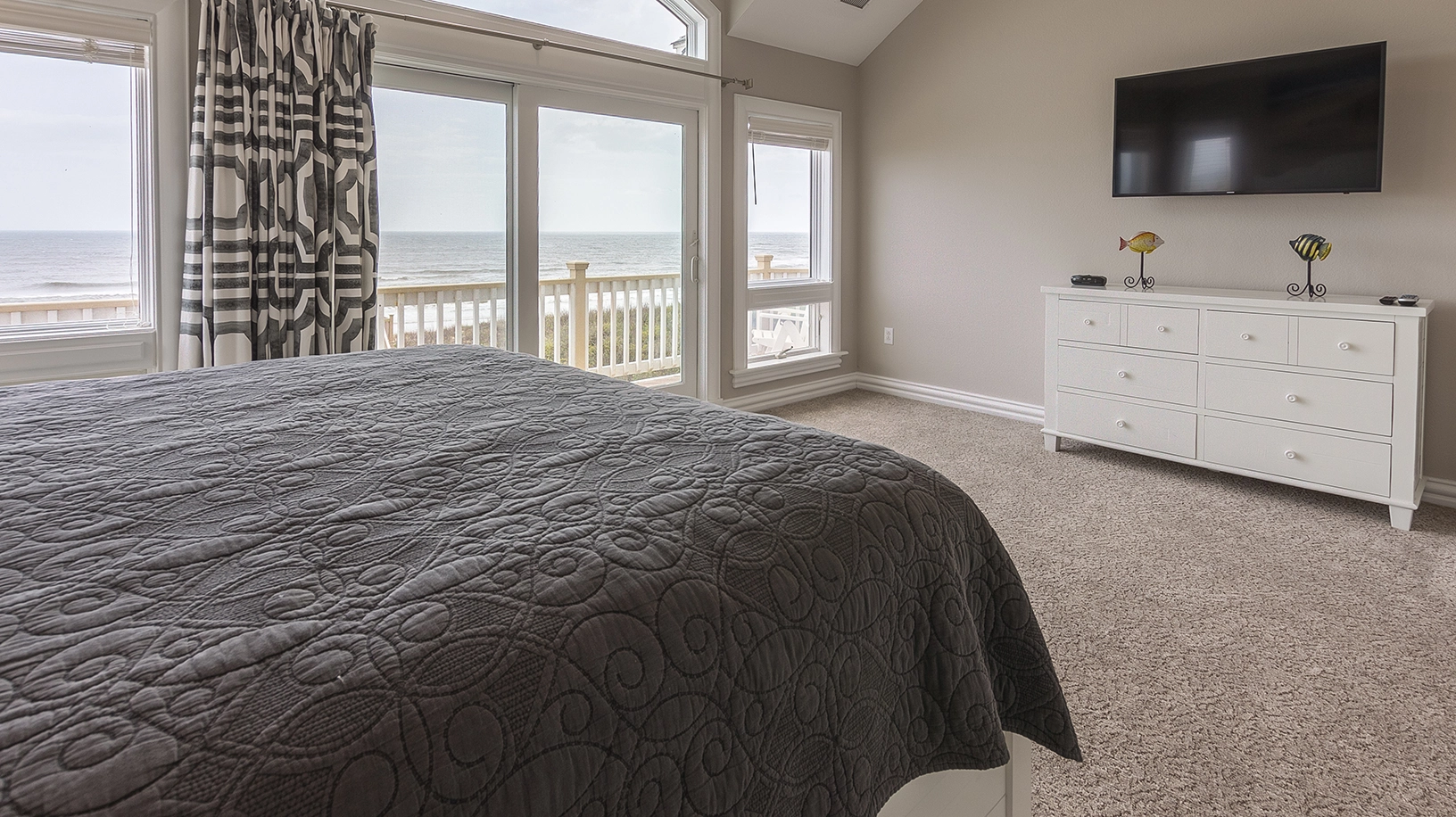 "Fit for a Queen was the perfect fit for a family vacation for twelve. We all had our own space and also a great open 3rd floor for games, dining and watching tv. The house was clean and had everything we needed. The one drawback is the lack of storage space in the kitchen for the groceries we brought with us and purchased once we arrived. It would have been handy to have a cabinet or two to store our groceries in. Every cabinet was filled with an excess of pots, pans, dishes, and other kitchenware that wasn’t used."