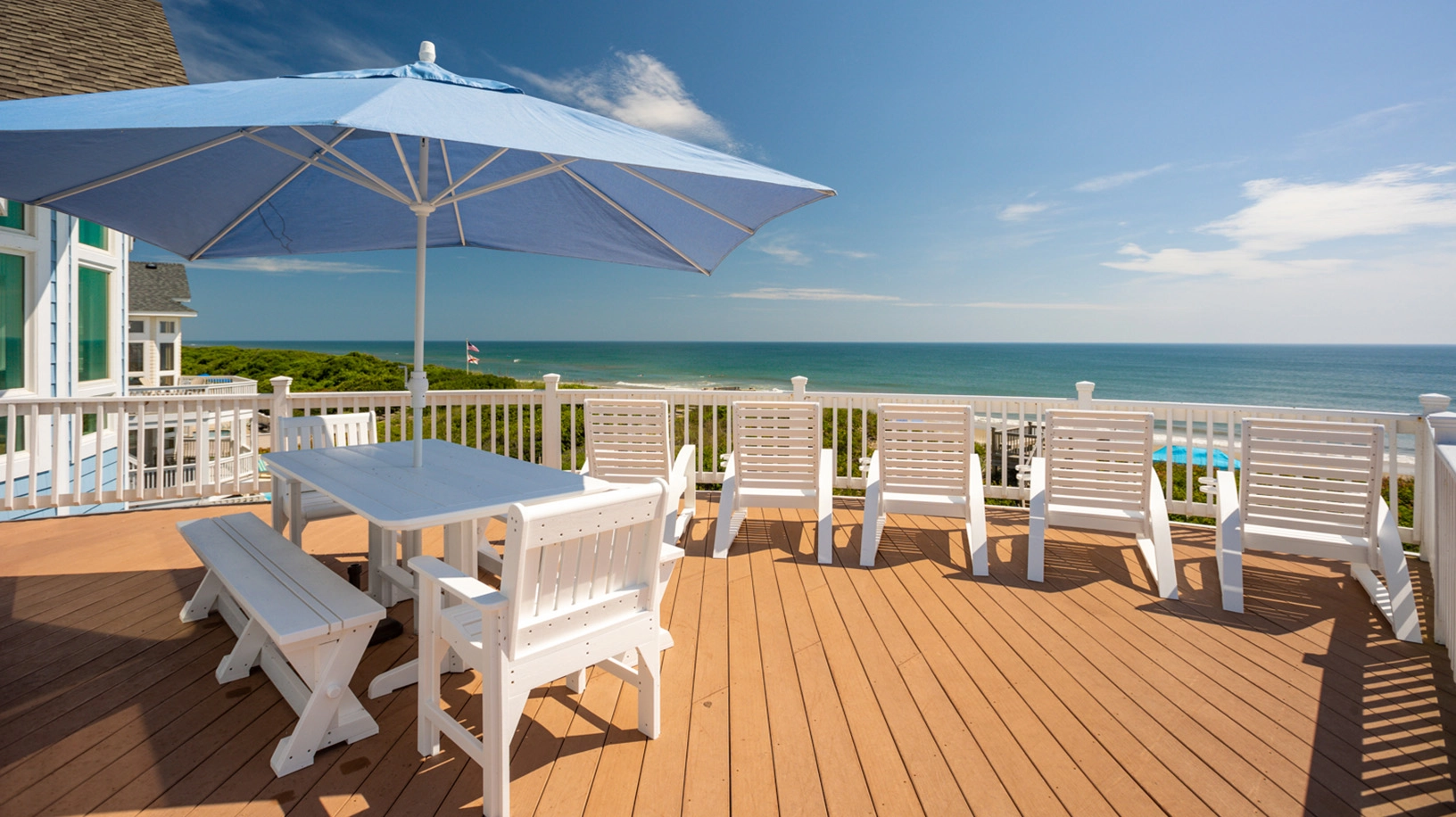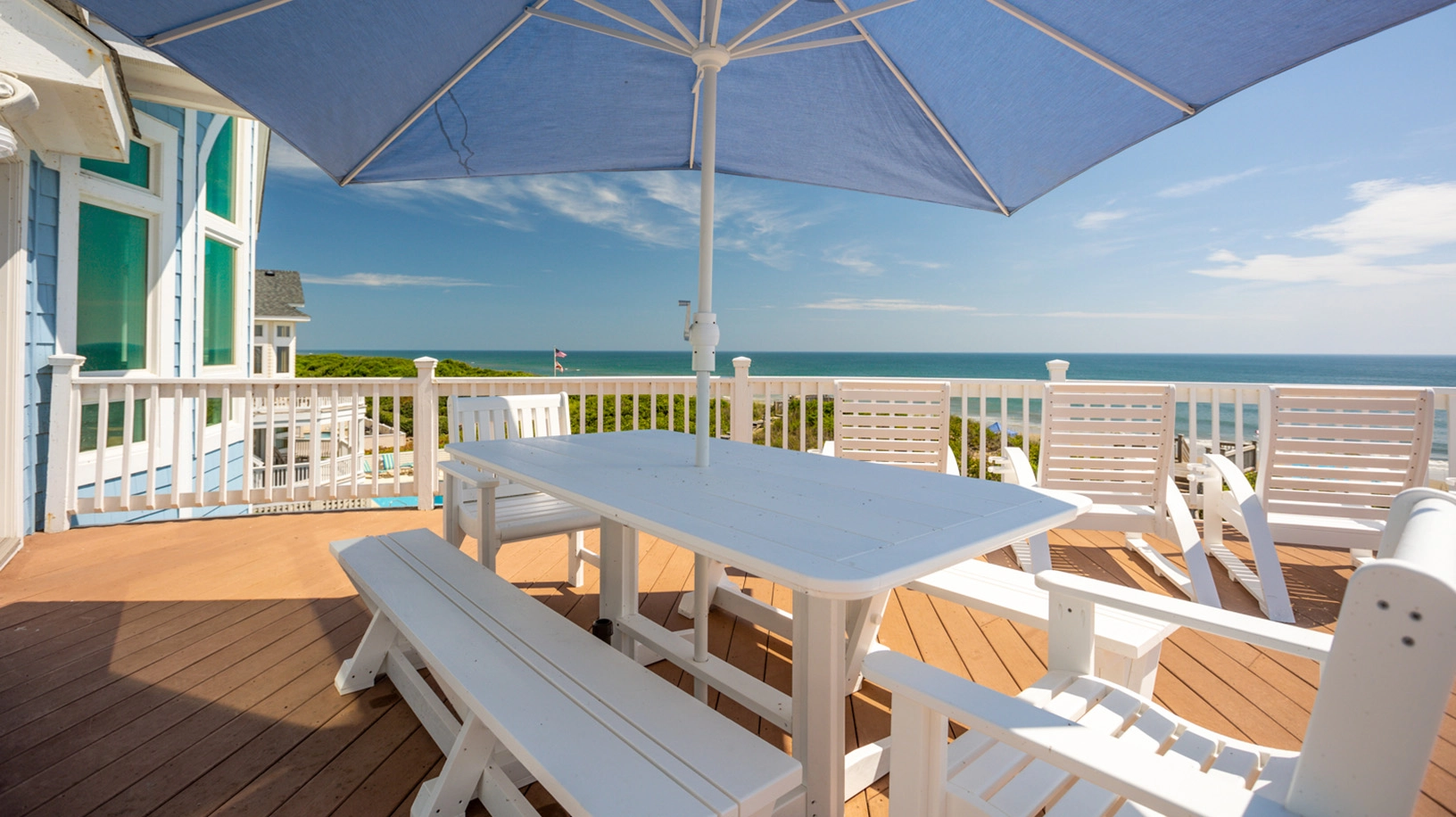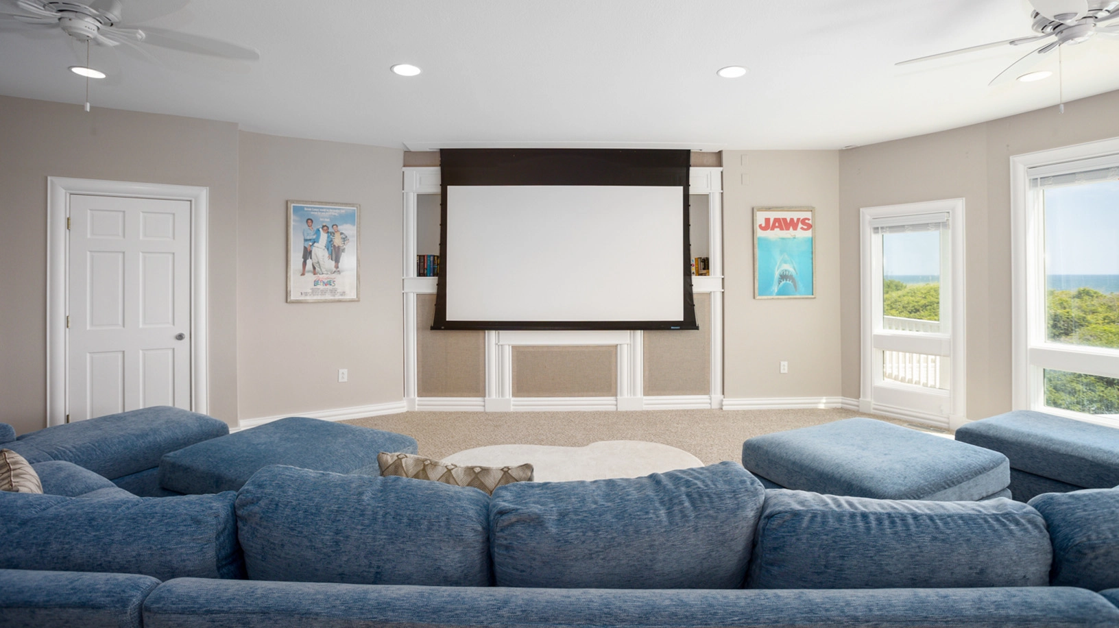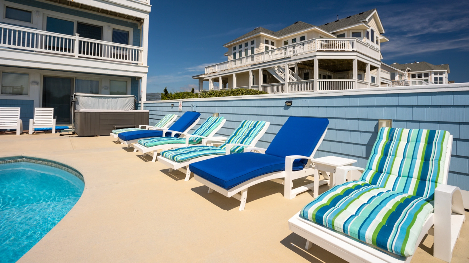 "We loved everything! The house was well appointed (e.g. the multi colored dishes matched the multi colored pool furniture), the master bedrooms afforded most with an ocean or sound view as well as balconies. The layout of the bedrooms also maximized occupant privacy having bathrooms, a theatre room or space separating one from another.The top level provided two dining sets creating the perfect ocean and sound views. The ship watch was perfect for assembling puzzles and reading - allowing participants to still be a part of the action on the kitchen level. The couches on the top level and theatre room were ample and comfortable. The kitchen refrigerators, wine cooler, two dishwashers AND an ice maker met our every need for a group of 14 adults.A small touch of having magnetic CLEAN and DIRTY signs on the dishwashers significantly reduced any excuses for certain guests not to clean up after themselves and put dirty dishes in the dishwasher versus the sink! LOL The pool layout provided opportunity for all to chat whether we were in the pool, hot tub or lounging in the lounge chairs."