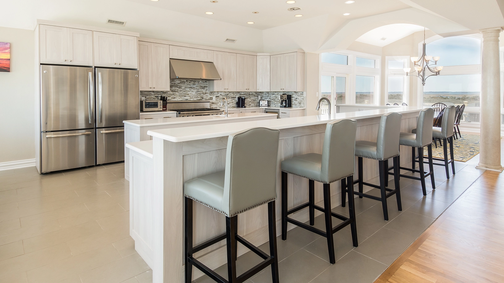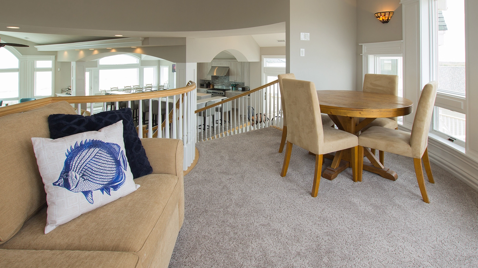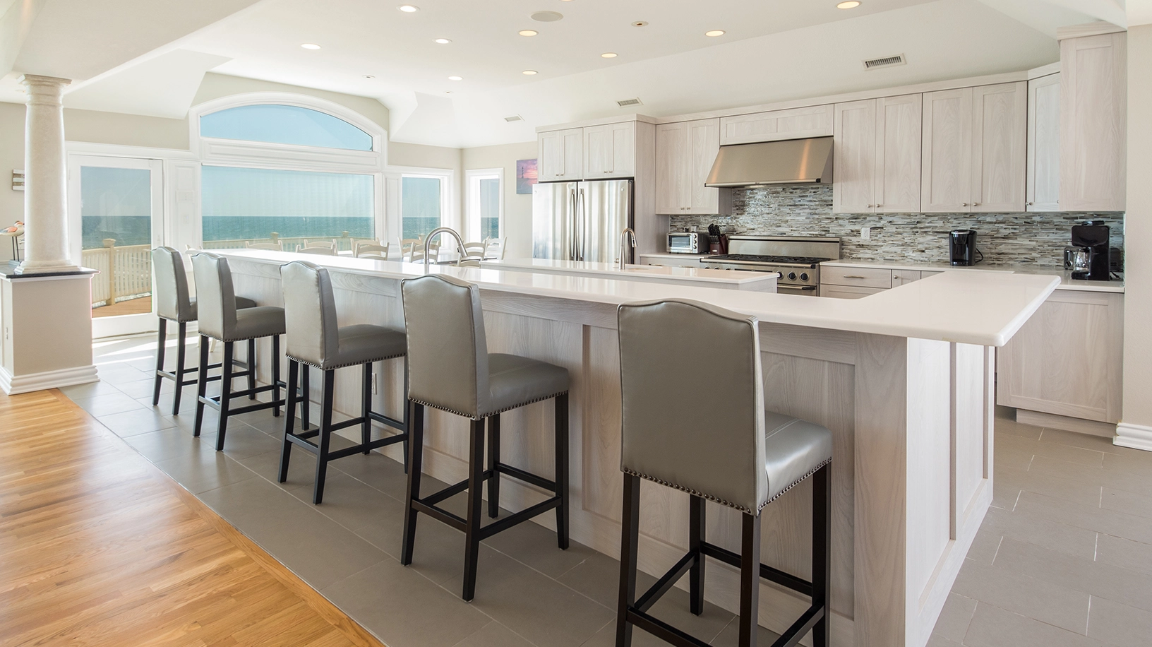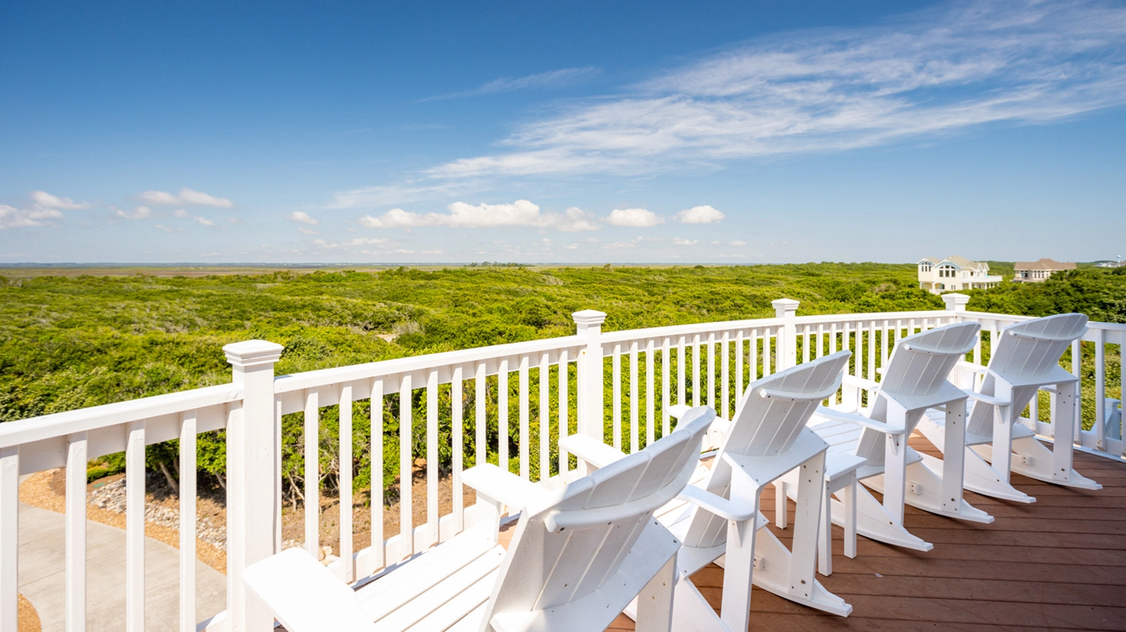 "We loved everything! The house was well appointed (e.g. the multi colored dishes matched the multi colored pool furniture), the master bedrooms afforded most with an ocean or sound view as well as balconies. The layout of the bedrooms also maximized occupant privacy having bathrooms, a theatre room or space separating one from another.The top level provided two dining sets creating the perfect ocean and sound views. The ship watch was perfect for assembling puzzles and reading - allowing participants to still be a part of the action on the kitchen level. The couches on the top level and theatre room were ample and comfortable. The kitchen refrigerators, wine cooler, two dishwashers AND an ice maker met our every need for a group of 14 adults.A small touch of having magnetic CLEAN and DIRTY signs on the dishwashers significantly reduced any excuses for certain guests not to clean up after themselves and put dirty dishes in the dishwasher versus the sink! LOL The pool layout provided opportunity for all to chat whether we were in the pool, hot tub or lounging in the lounge chairs."
