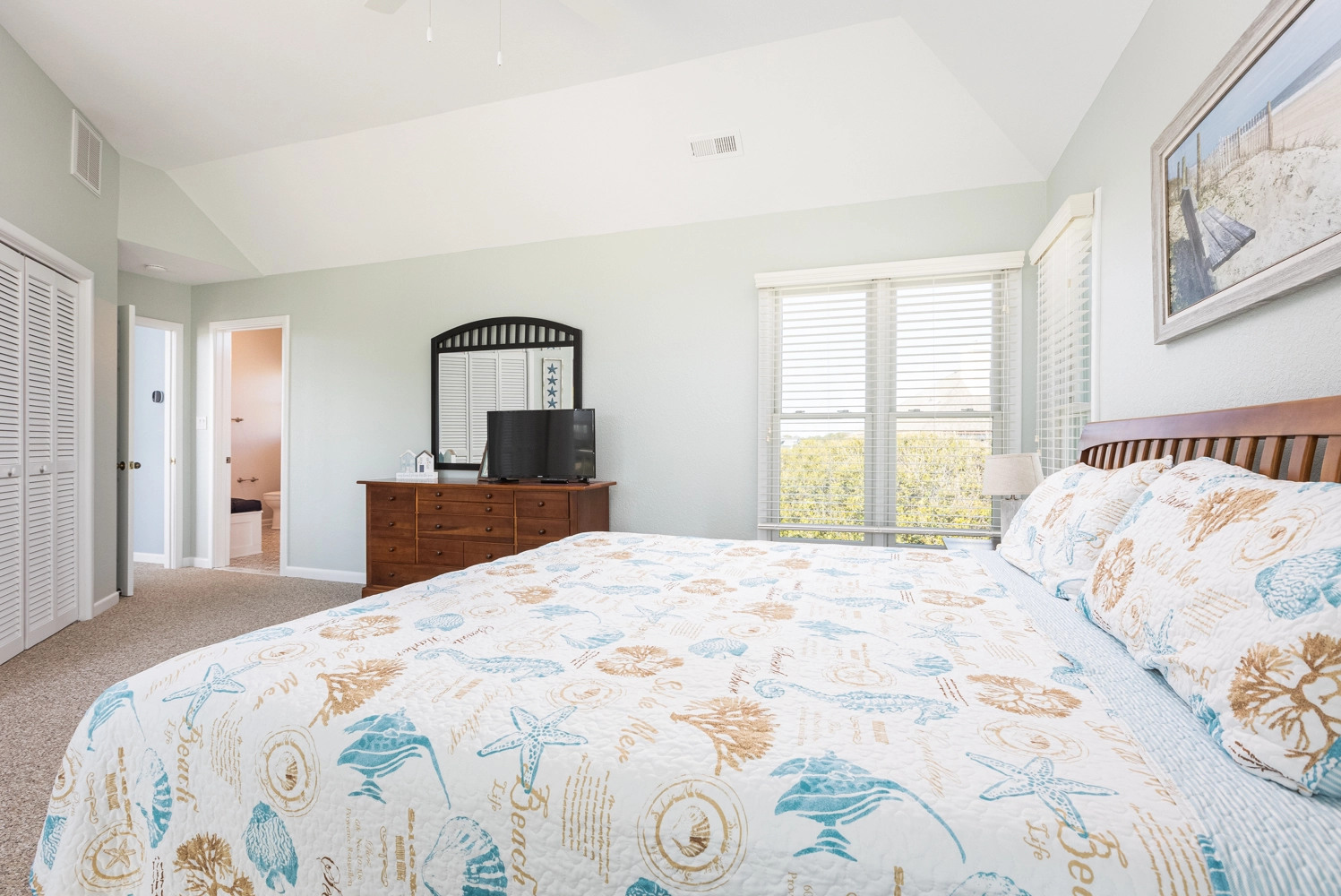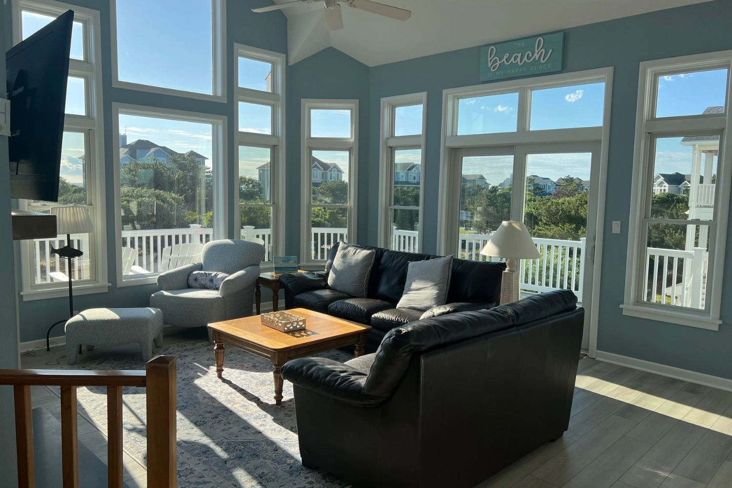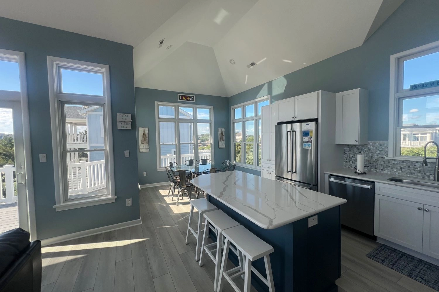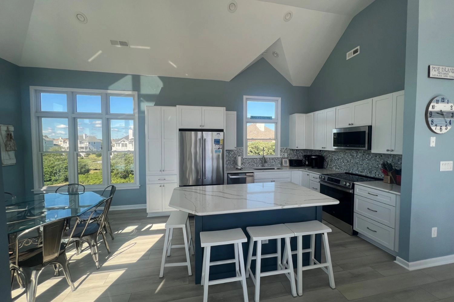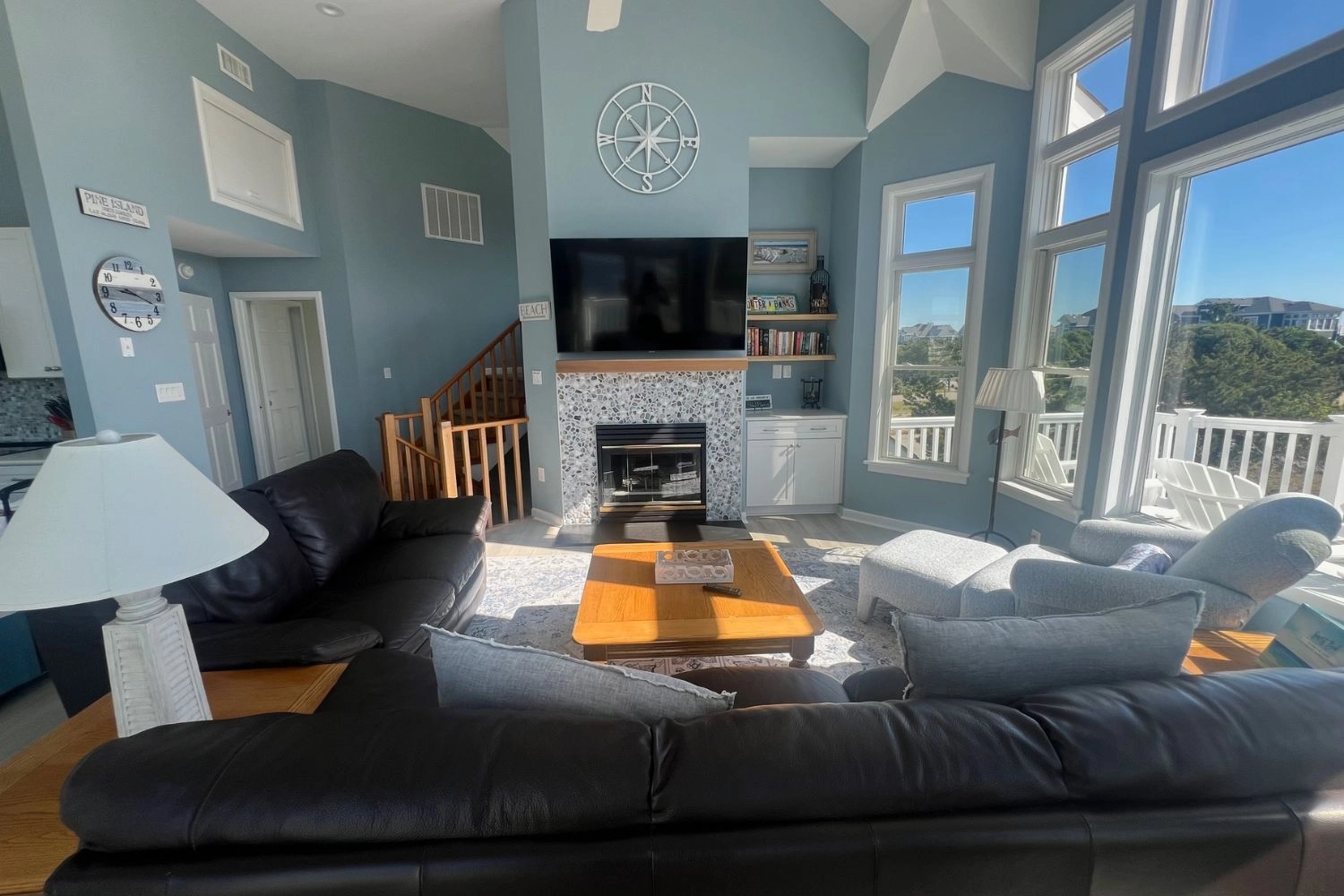 "We have stayed in this same home 3 times over the past 23 years that we have travelled to the Outer Banks for vacation. The new owners have done a wonderful job updating and improving this home. Loved the sea glass surround on the fireplace and the updated 3rd floor bath. This home is well equpped and spacious. The home is ideally situated in once of the best locations in Pine Island with close proximity to the beach access as well as the community pool and tennis/pickle ball courts. We love it there."