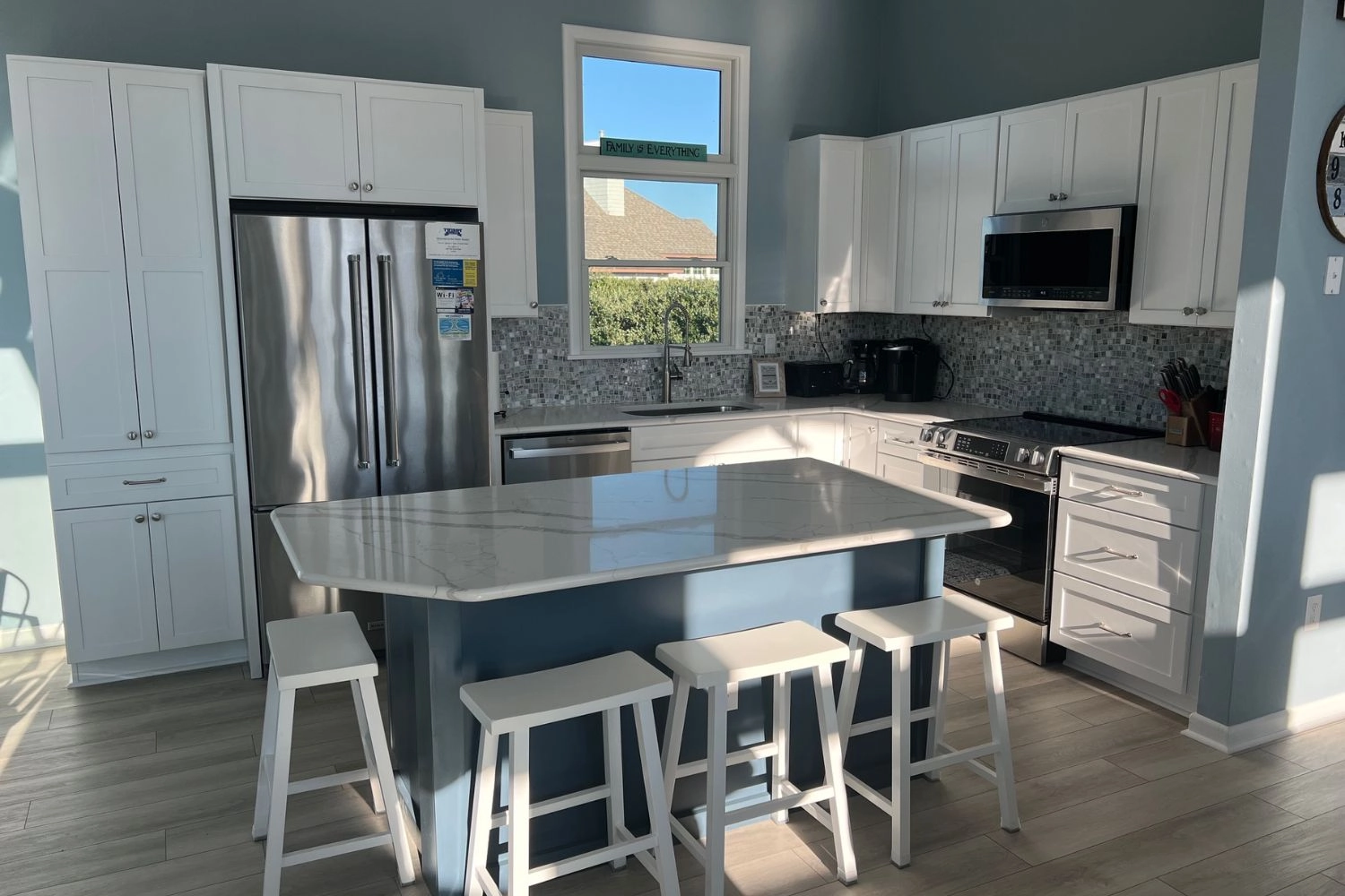 "We liked the distance to the beach access that was mostly a ramp. It made it easier to transport things to the beach. We liked the master bathroom. The kitchen was well-stocked with necessary items. The house was clean overall when we arrived."