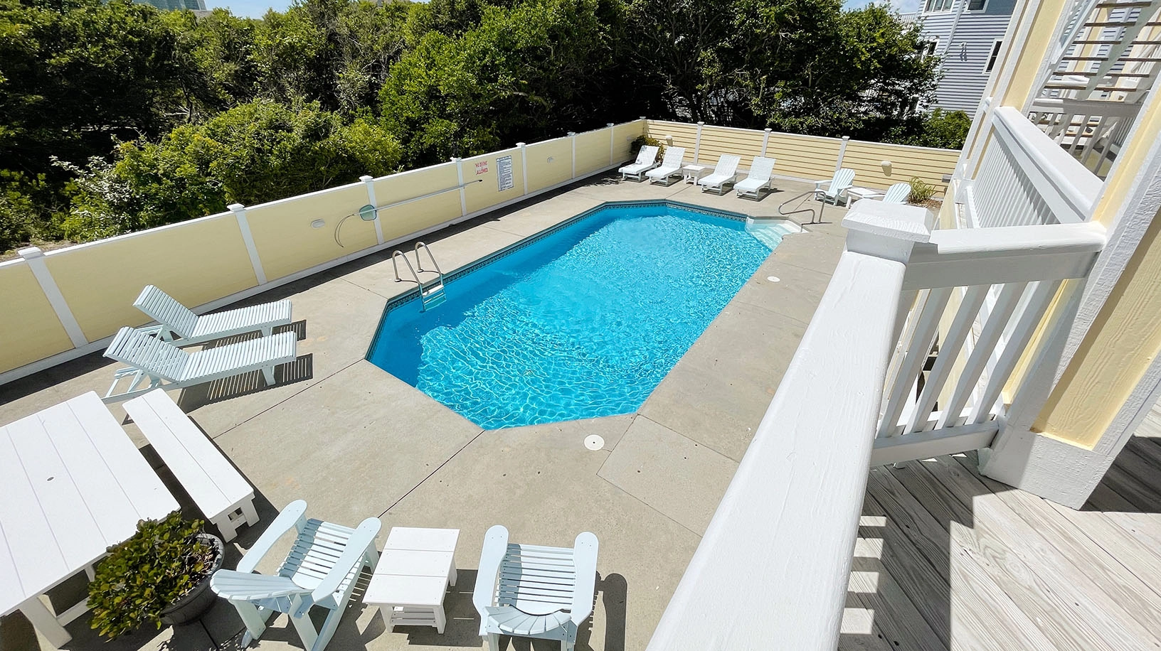 "As a group, we enjoyed the large pool area. The trees provided shade when we needed it. Also, having the grill upstairs just off the kitchen was convenient. There is great open living space on the top floor with plenty of seating for everyone since there are 2 large tables near each other. We loved the hammock and the swing on the deck. Outdoor space is awesome."