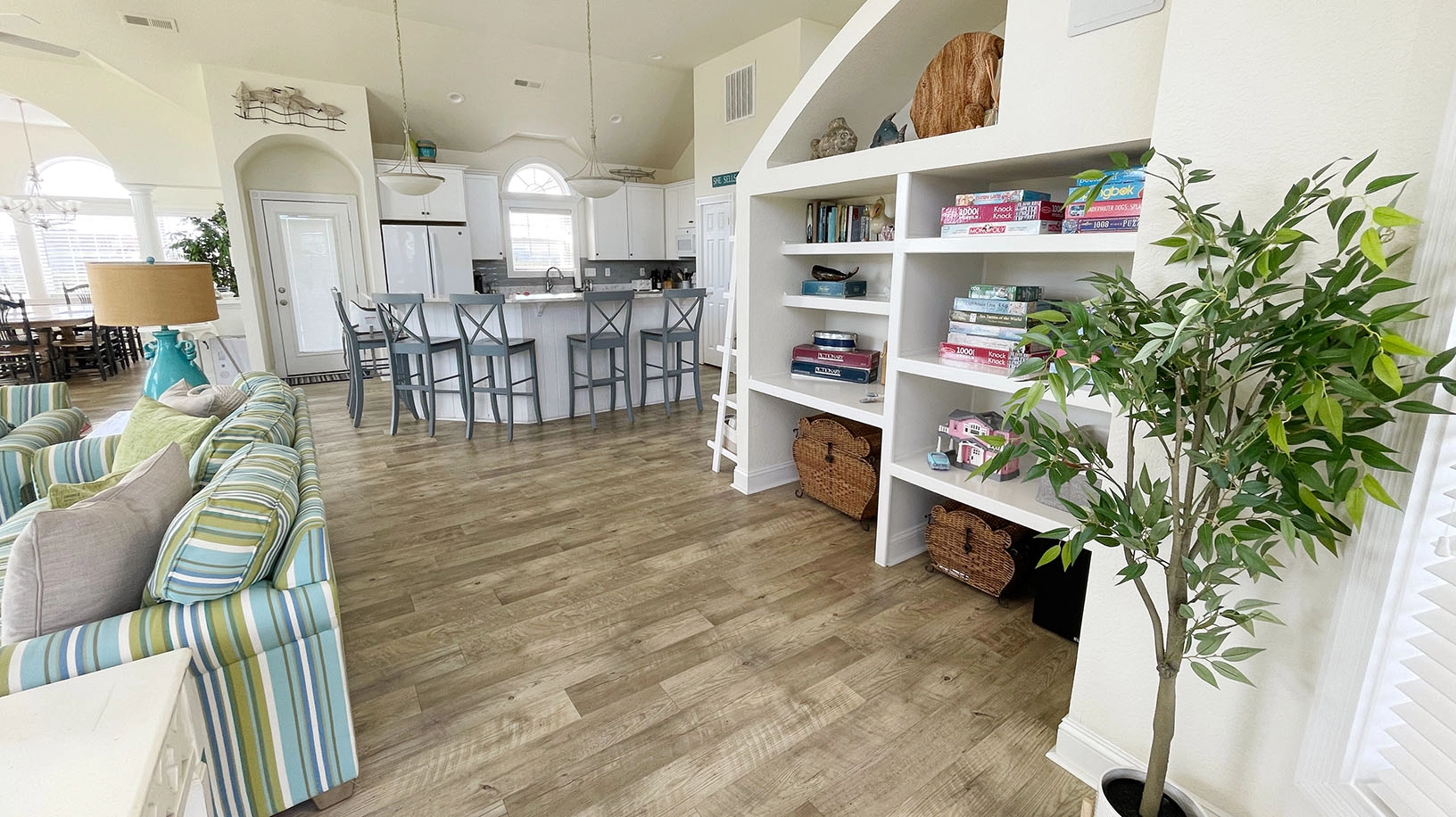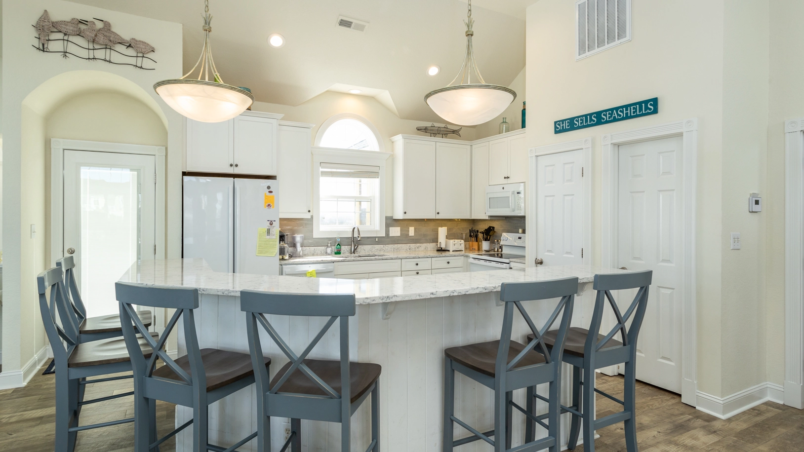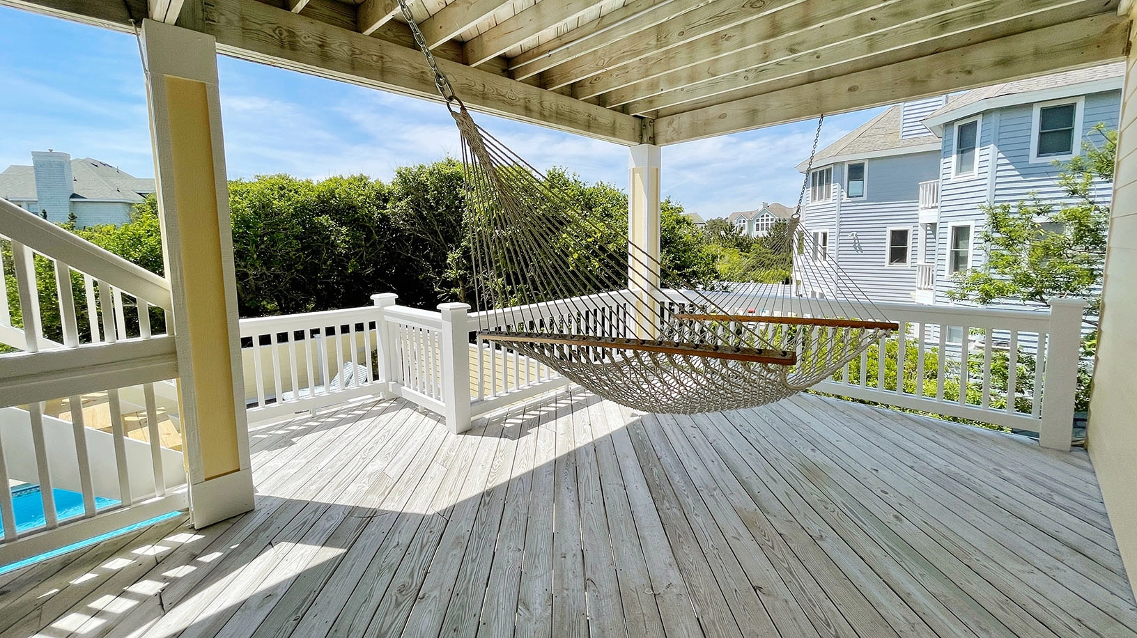 "Beautiful location! Convenient to beach and shopping Outdoor areas—pool, hot tub, decks,swings and hammock very clean and FUN. Were in constant use Minor complaint was not enough usable closets or drawers in the bedrooms Enjoyed our family time in this house"