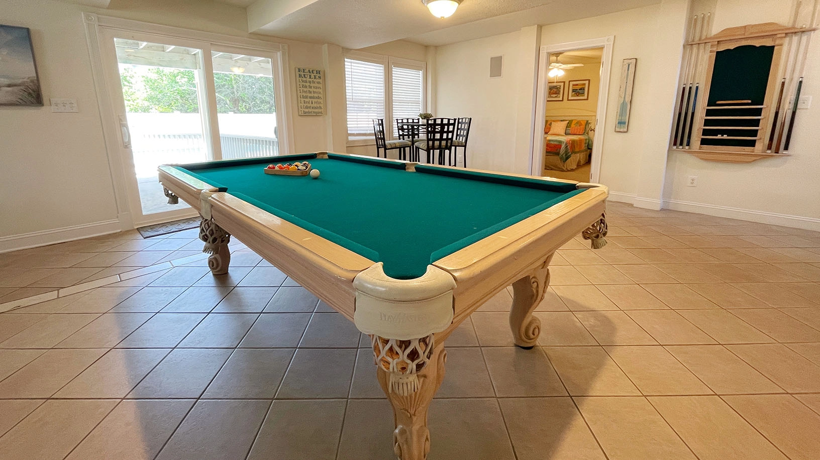 Rec room with pool table and wet bar; laundry; access to private pool and hot tub.