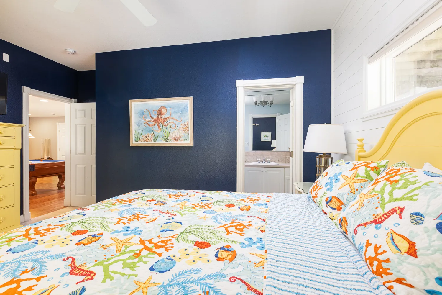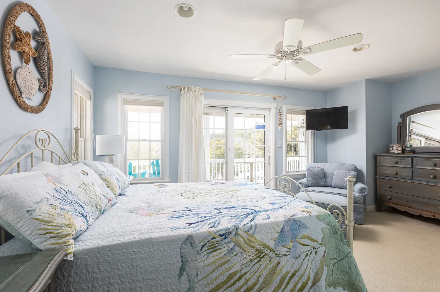 "Grace by the Sea was exactly as pictured! This is a beautiful home! I love the beach and everything related and this house did not disappoint. I LOVED all the beach themed decorations. The house was fully equipped. I also love to cook and the kitchen us a dream! I don’t usually cook much on vacation but could not resist being in the huge, modern kitchen. The weather wasn’t great 5 out of the 7 days we were there but we had no problems staying indoors. We loved that the TVs had Hulu, Netflix, YouTube and other apps, all available for free to use. We did have some issues one night signing into Netflix but it was no fault of the owner, as Netflix is trying to crackdown on account sharing so we just used a different app. The owner contacted me by email upon check-in and provided the most extensive list of information I have ever received when checking into a vacation home. They provided suggestions on places to eat, visit, activities, etc and offered direct assistance with any issues we had. I did not personally get in the pool because it was too cold but I was able to enjoy the hot tub a couple of times, which was great. The guys on the trip did some fishing in the ocean. We saw turtles in the pond behind the house. There were 5 adult couples in our group and everyone fit comfortably, with an extra bedroom to spare. We loved the multiple spaces to relax and hangout. The bedrooms were large and lovely, all with linens and towels provided. We would definitely stay in Grace by the Sea again, without hesitation!"