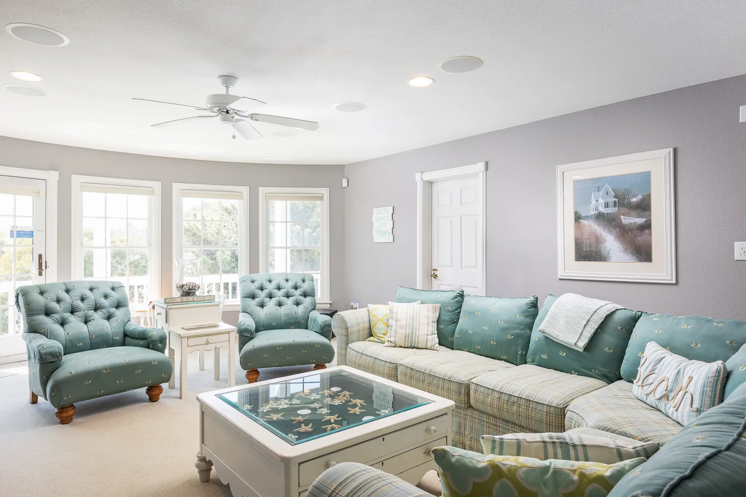 "I loved (1) that on the top and middle floors there are large yet cozy gathering and lounging areas, (2) the elegant decor, lighting and size of the dining room, (3) the exceptional beauty and size of the swimming pool (compared to the many we've seen in Pine Island and the rest of Corolla), (4) the unique den behind the kitchen, (5) the very large kitchen and how well equipped it is, and (6) the house's convenient location just about a 4 minute walk to the beach."