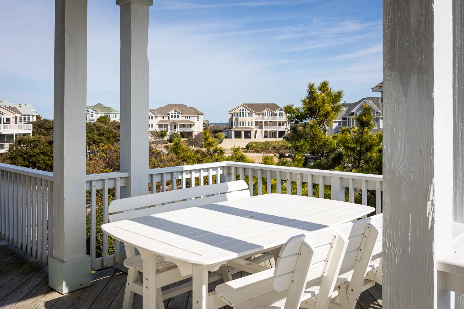 "This having been our third consecutive annual stay here, we were pleased to continue noticing the great upkeep of this gorgeous and all-so-comfy house. That was noticeable on the pool, the hot tub, the bedrooms and kitchen at least. For a group of ten such as ours, that there is a cozy gathering area on the top (grand room) floor as well as on the middle floor is great, allowing for spreading out. The grand dining table invites to both group meals as well as to gather for games, and the medium height chairs are so convenient and comfortable. The kitchen rocks with how well equipped it is and its generous size and layout. The architectural beauty of the pool area brings much relaxation, and the size of the pool is the largest we've seen (in a single house) in our 27 (out of 32 total) years of vacationing in Corolla."