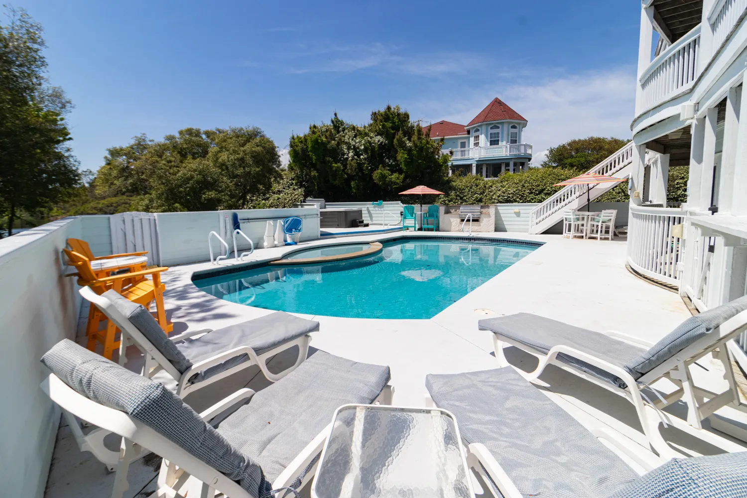 "Best house we have stayed at on the OBX! There were 13 of us including 5 children under 10. Plenty of room and space- we didn’t feel on top of each other. The pool was a great size and the heating was fabulous! Beach access and playground close walk 😎hope to return"