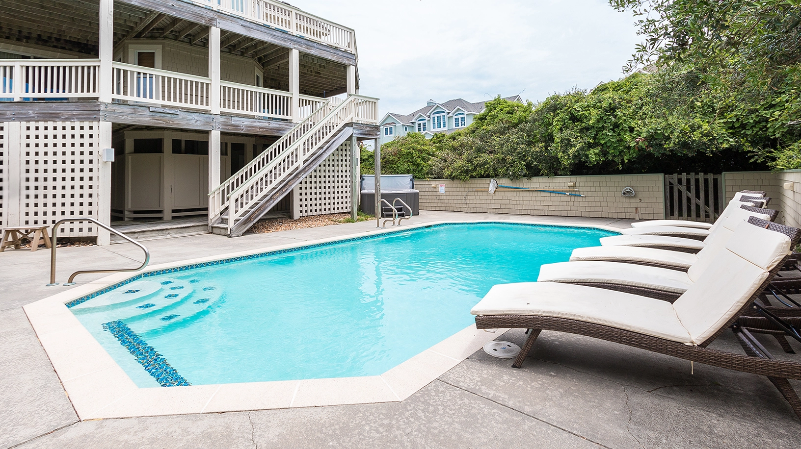 "Fantastic home - best equipped OBX rental we have ever stayed at (comfortable beds, full kitchen - including good pots/pans, sharp knives, baking trays, etc…you name it, this kitchen had it). House in great shape and/but was sold while we were staying there (hope new owners are as diligent in rental upkeep as previous ones!). House well-laid out, quiet on pool side and some traffic noise on other side. Great decks/porch, pool and very short walk on private walkway to beach. One of our best visits to the OBX yet and would not hesitate to stay in this house again."