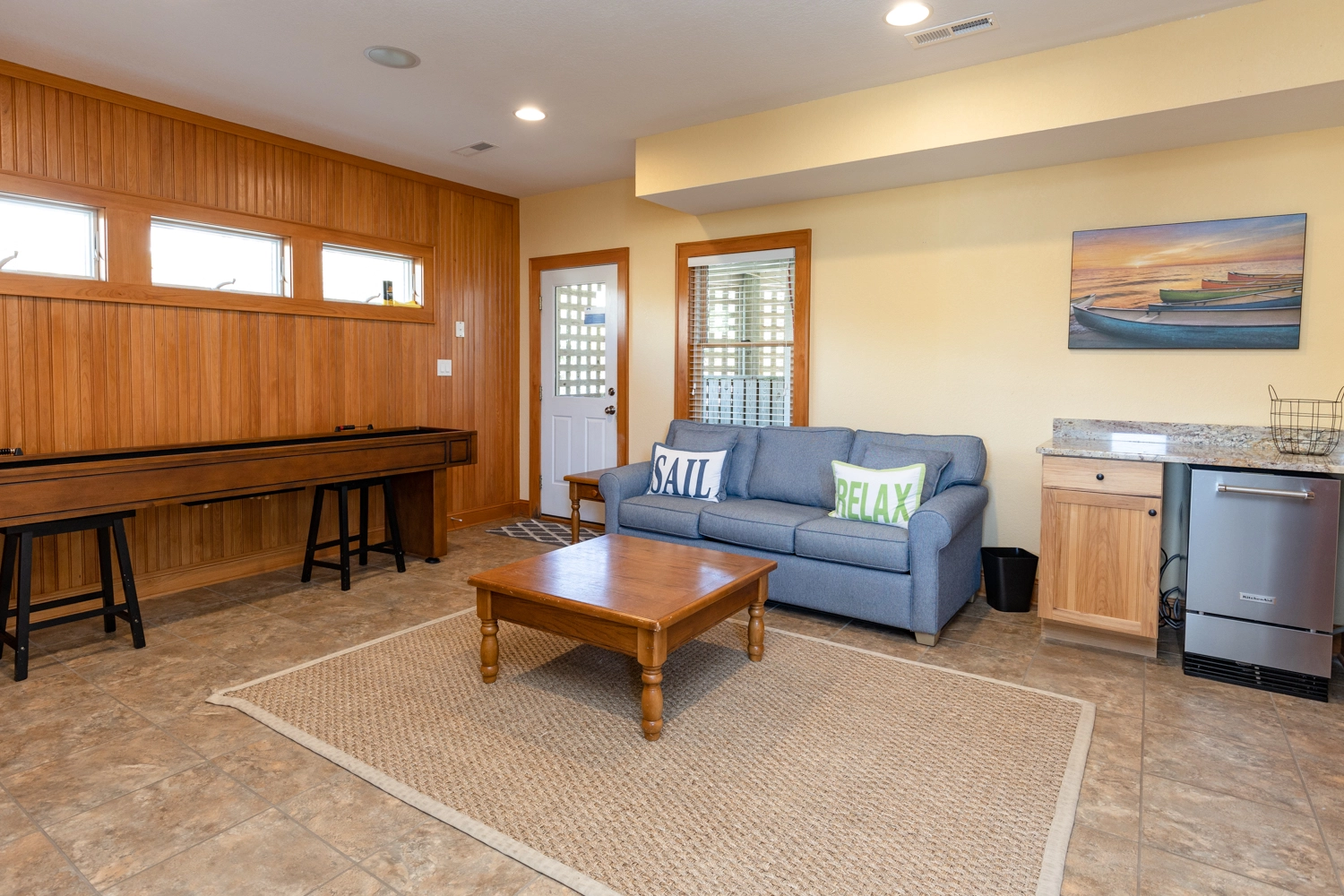Rec room (QSS) with shuffleboard; access to pool and hot tub.