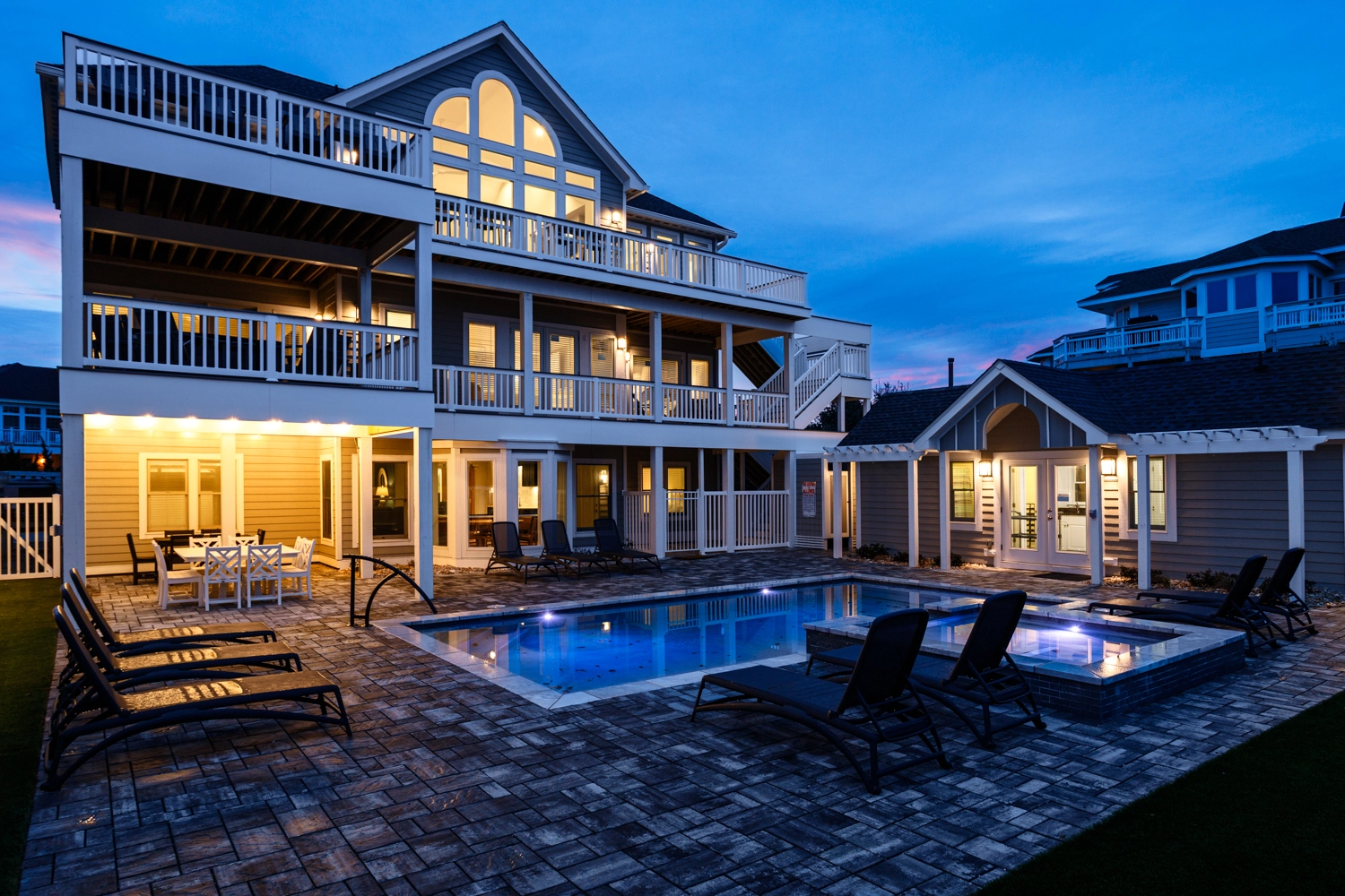 "The newly renovated Harmony Lane is beautifully furnished and has one of the nicest pool areas we've experienced in our many years visiting OBX."