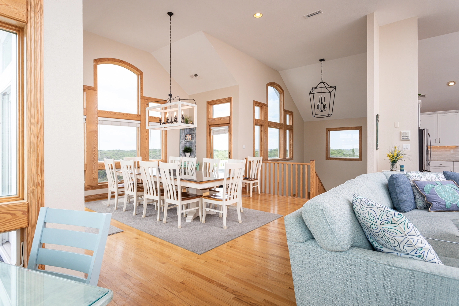 Great room; kitchen; dining room.