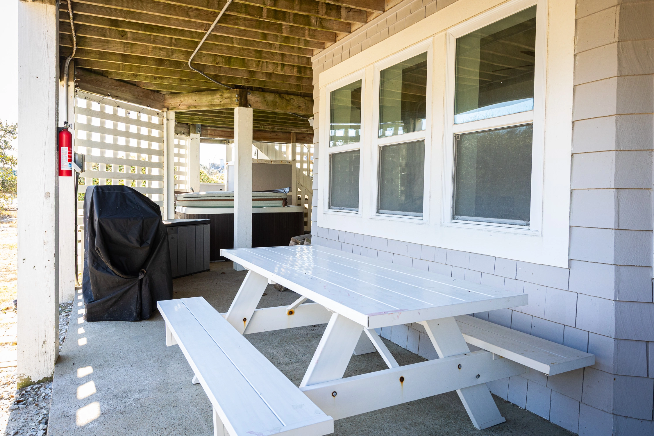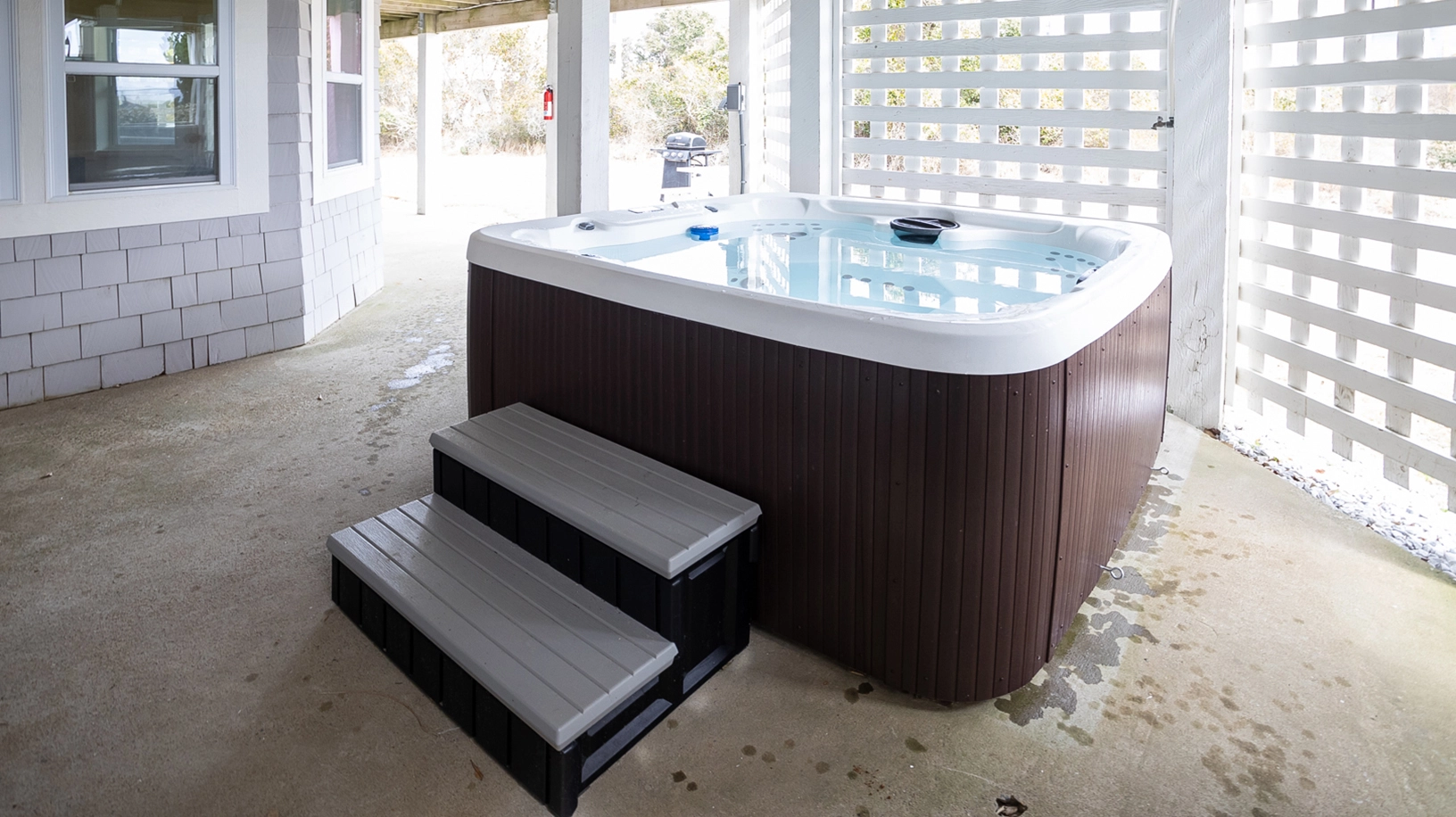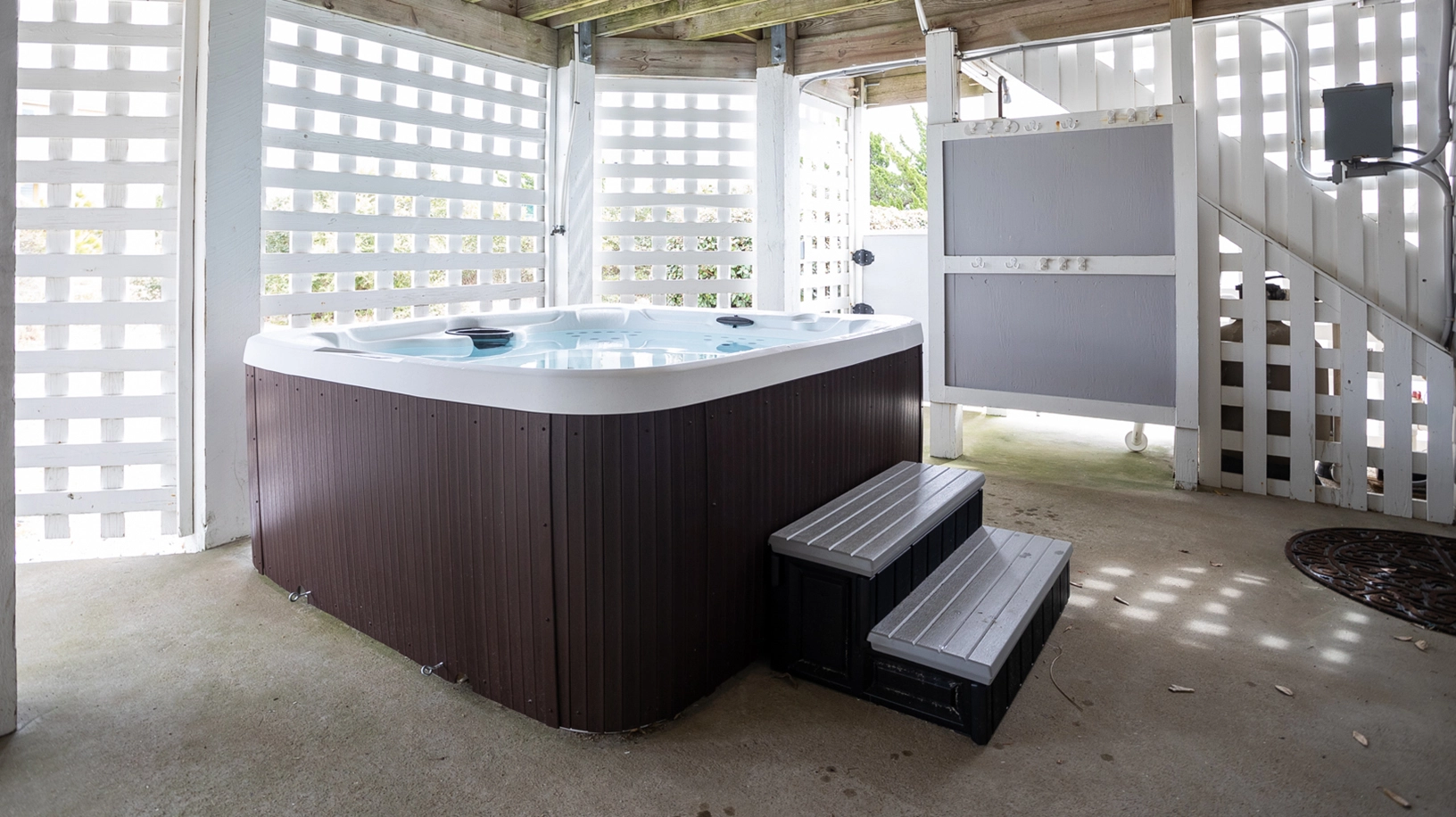 "Lots of space, the couch was large, plenty of bathrooms, the hot tub, the beach cart and chairs and how close it was to the beach."