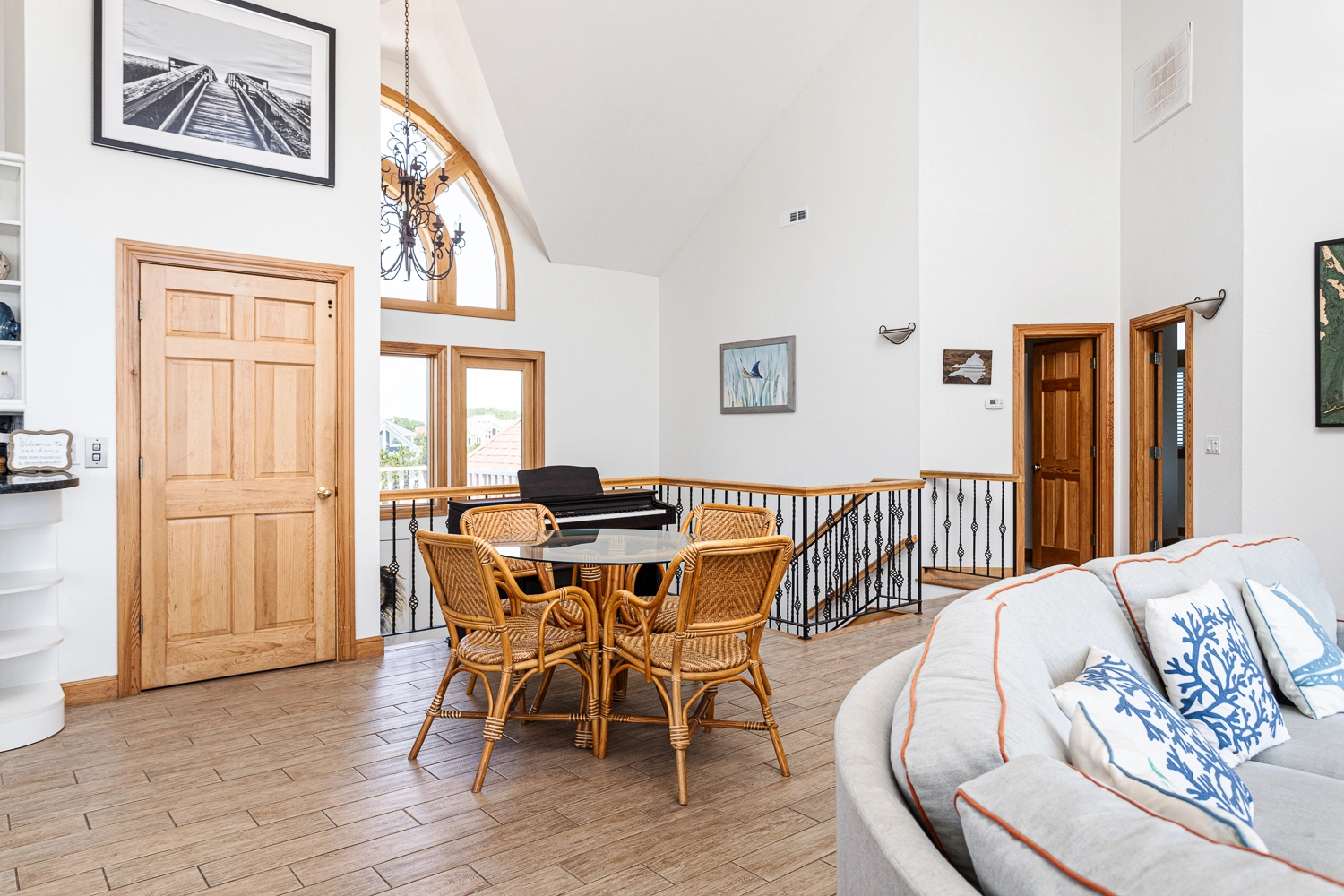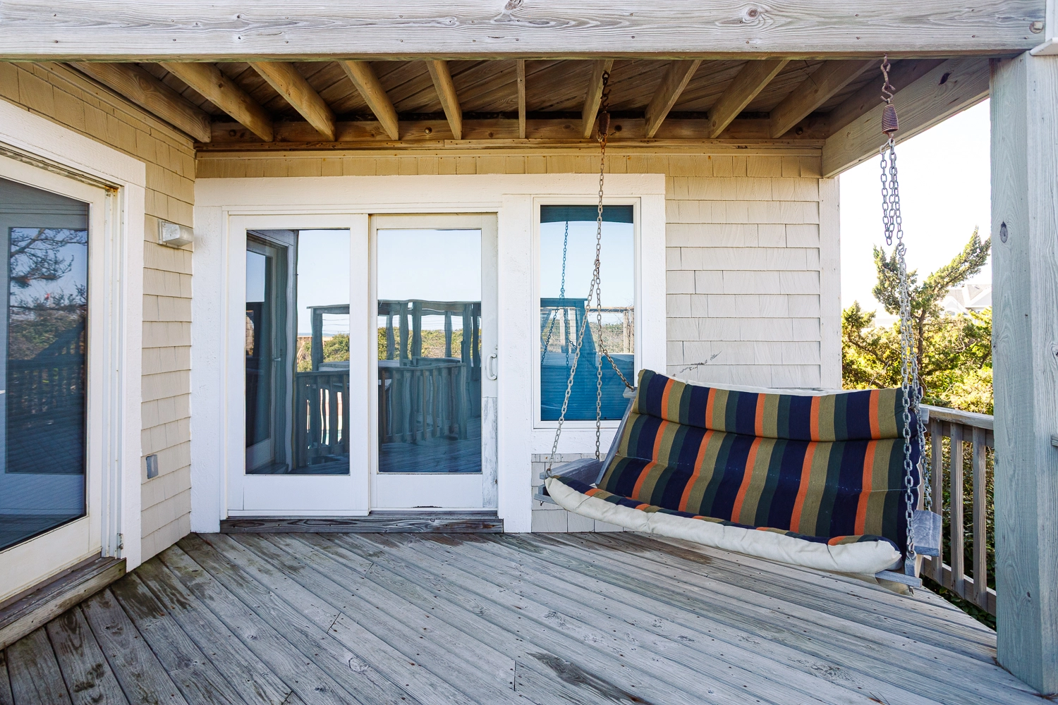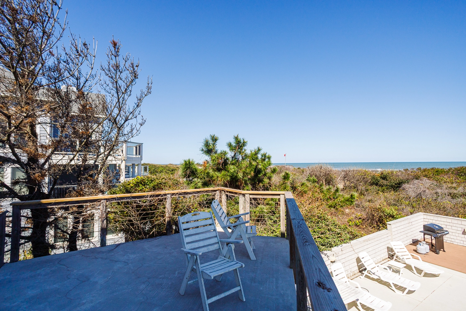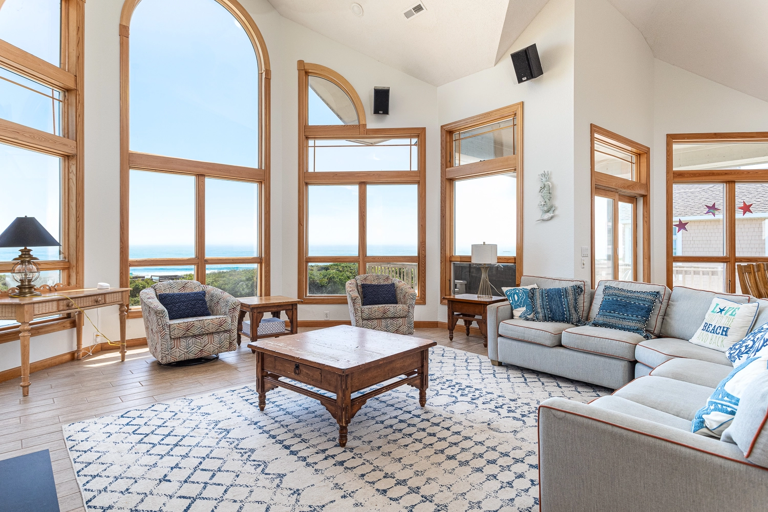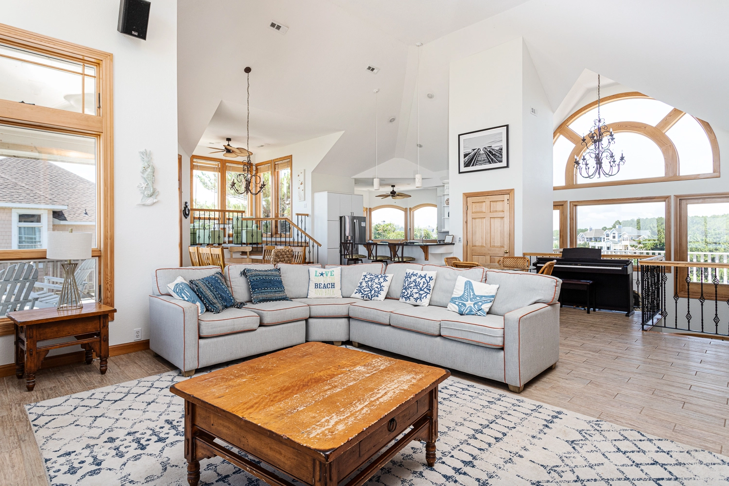 "Corolla location; proximity to the beach/view. Well-stocked with kitchen utensils, plates and dishes, and silverware (more than enough to handle Thanksgiving cooking for a family of 8). The elevator made loading and unloading much easier (especially for older folks)."