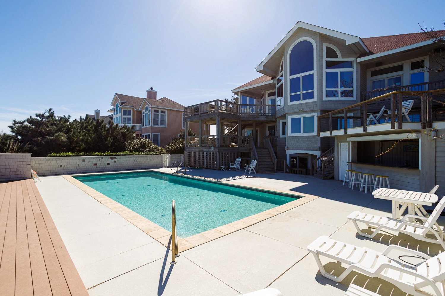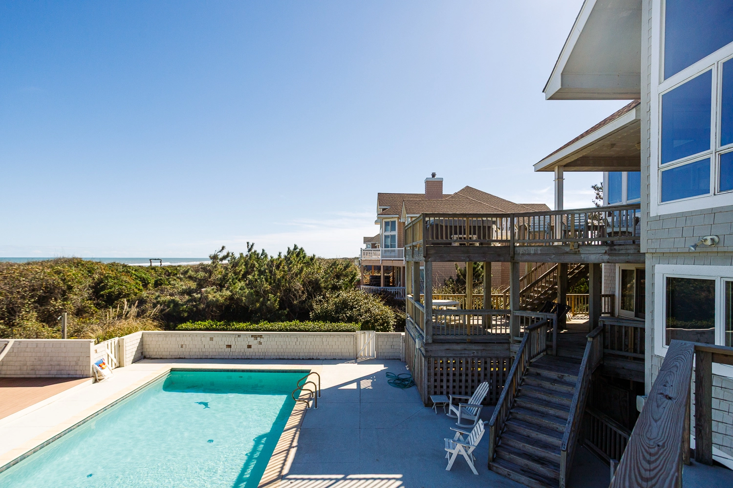 "Loved the space La Fleur de Mer provided. Plenty of bedrooms and bathrooms for each of our 6 family members. Being on the beach with our private beach walk way, the huge windows on the top floor to view the ocean from the inside, the decks, and pool and hot tub were a nice bonus as well as the theater room and pool table for evening entertainment."