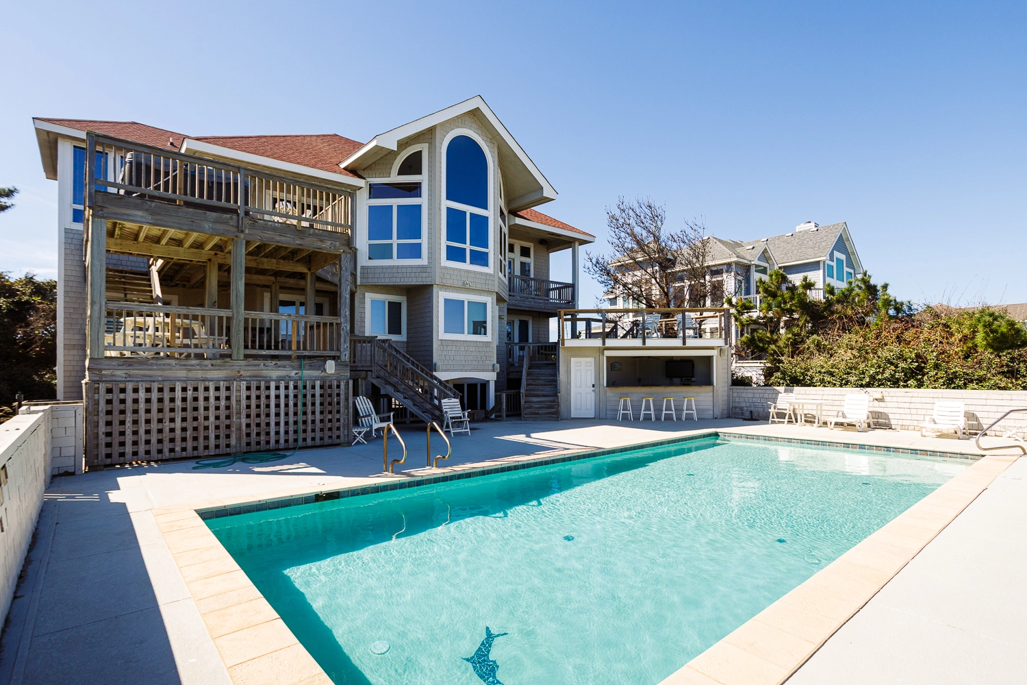Elevator, private pool, poolside cabana with beverage refrigerator and rooftop sitting area with ocean views, hot tub, charcoal grill.