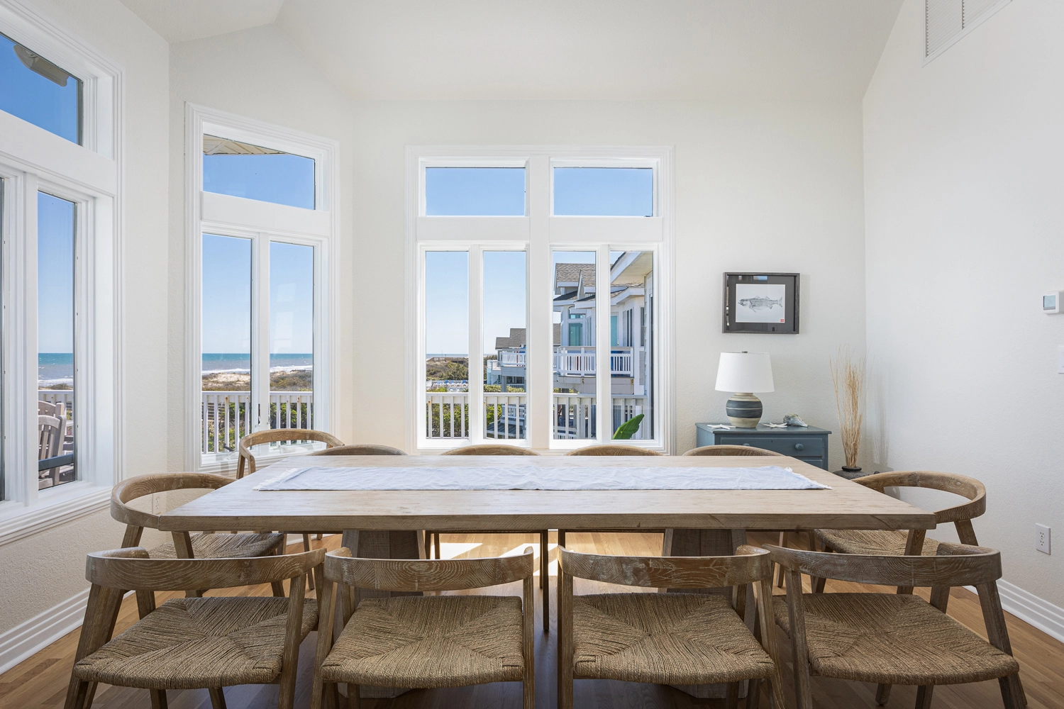 "This home was beautifully decorated and had expansive, incredible views of the ocean. The kitchen was well-equipped and sizable enough to accommodate larger groups. The deck was furnished with a beautiful table to enjoy meals outside while taking in the spectacular views. We would definitely rent this home again! After 20+ years of renting in the Outer Banks it is one of our favorites."