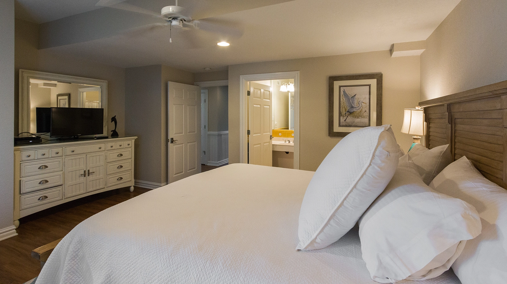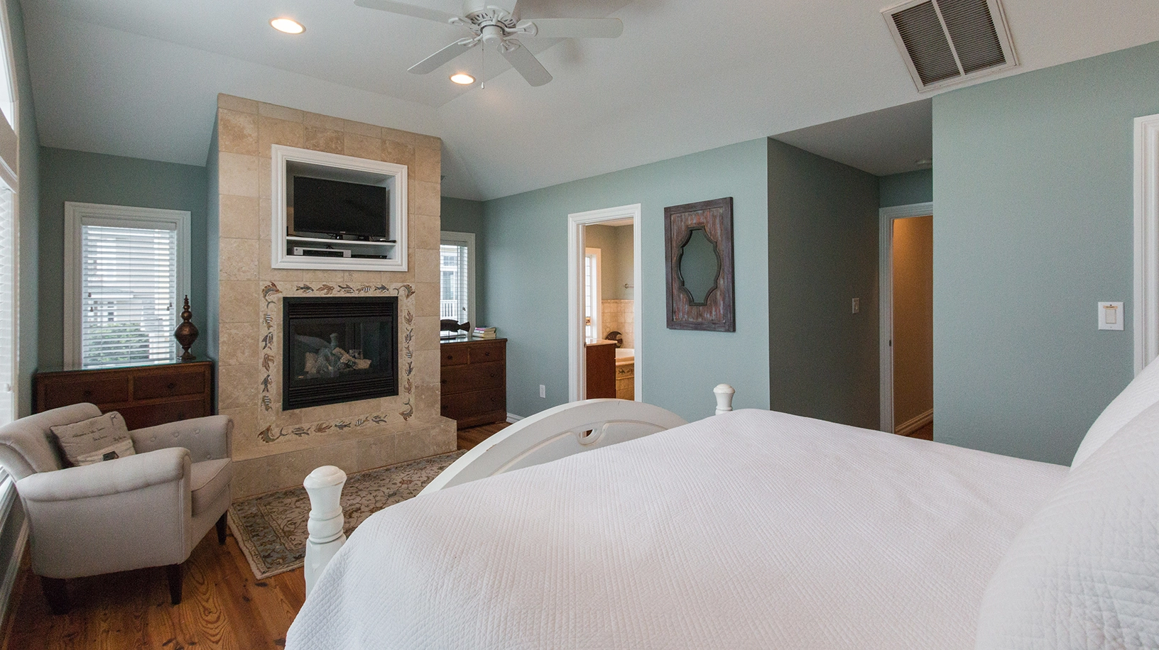 Sound-side, King, Standing shower, Soaking tub, Gas fireplace