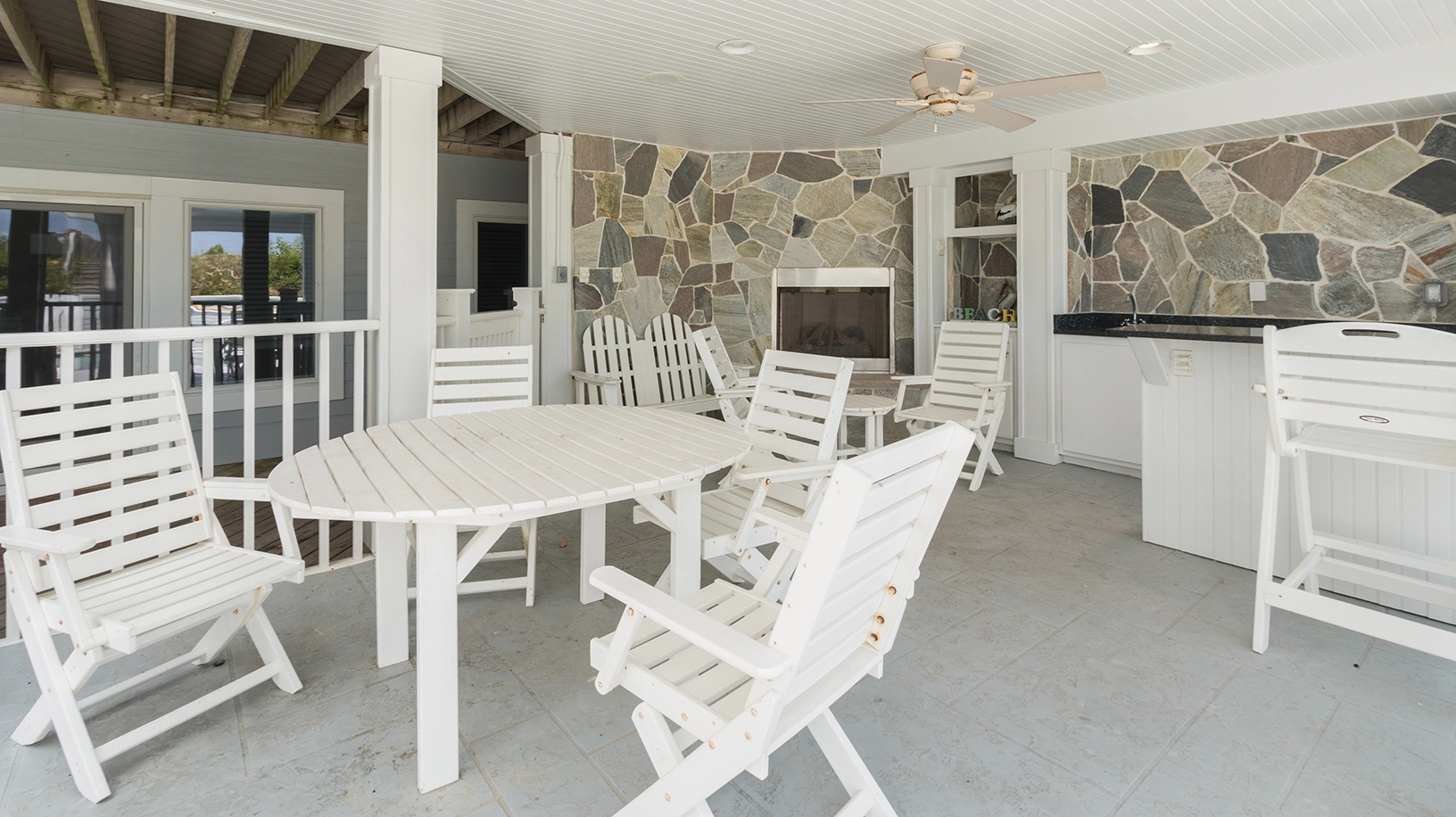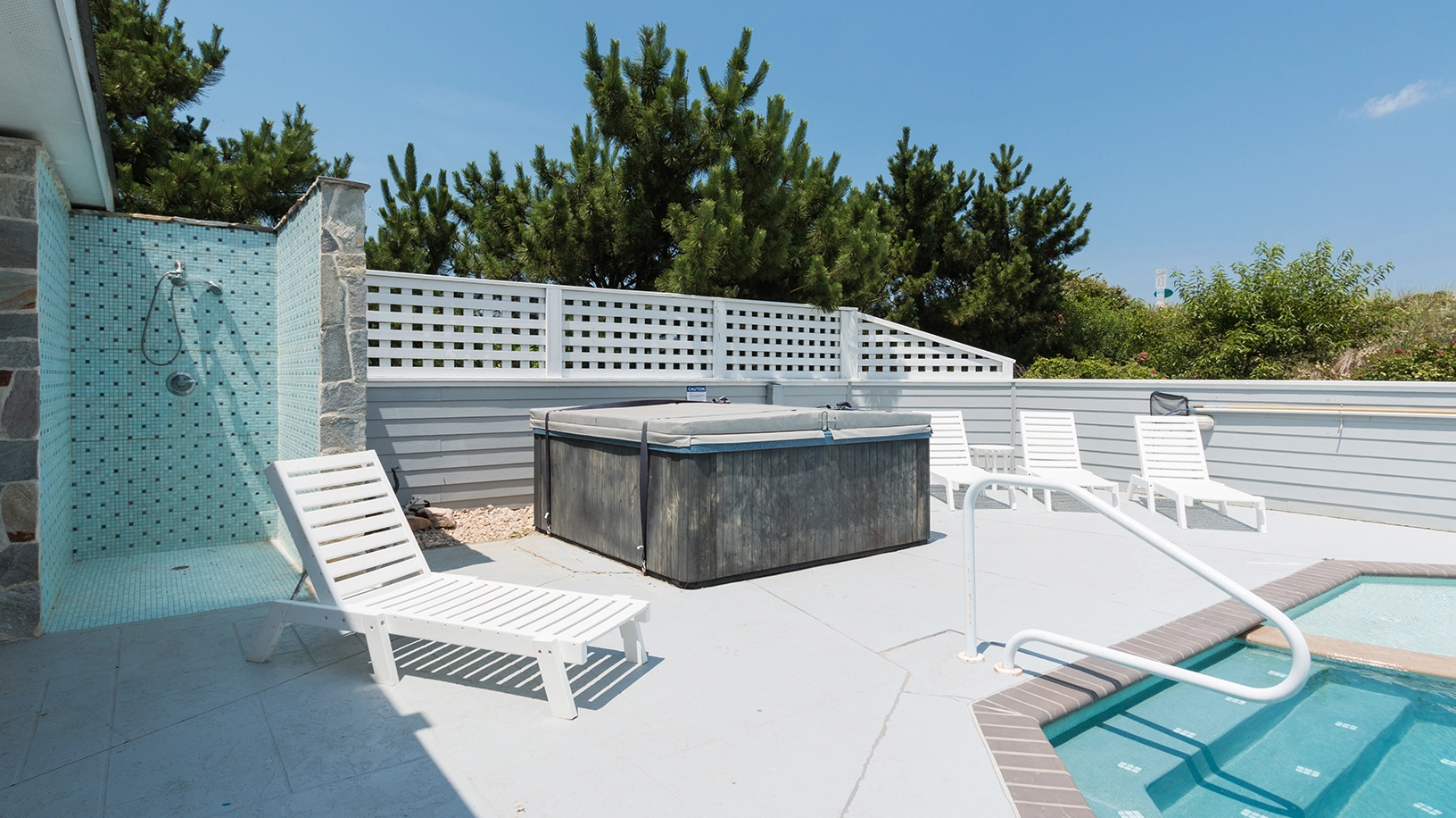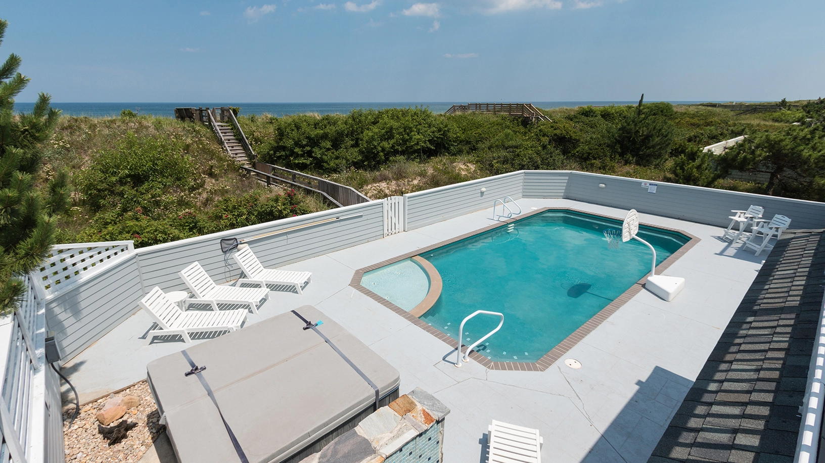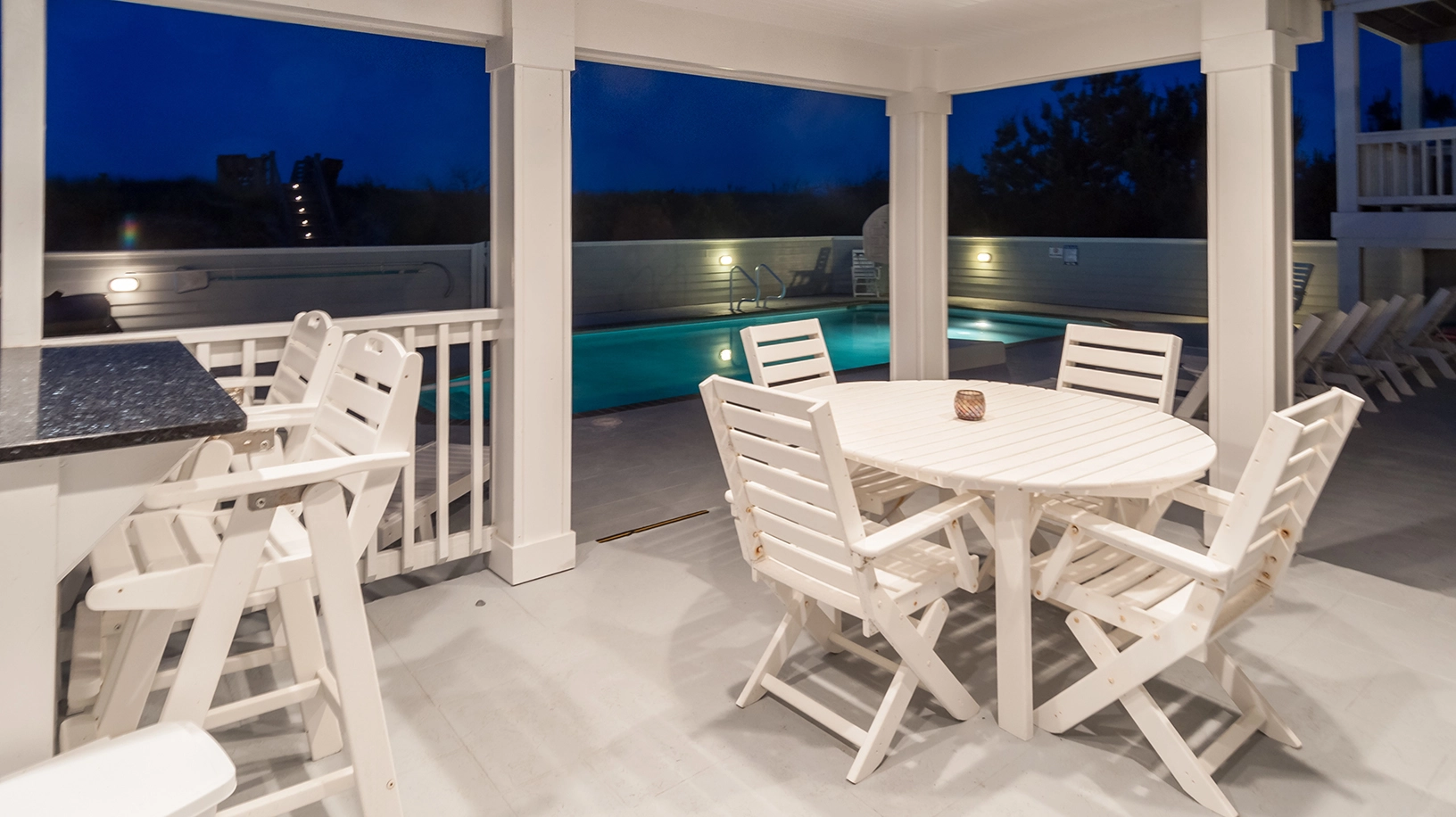 "Heated pool, close proximity to the beach, nice extras like ice machines, basketball net for pool, all the kitchen utensils, lots of seating on all levels, theater room, Sonos system, bathroom for the pool deck area and top floor, outside shower for after beach…so many nice ‘extras’ we didn’t expect."