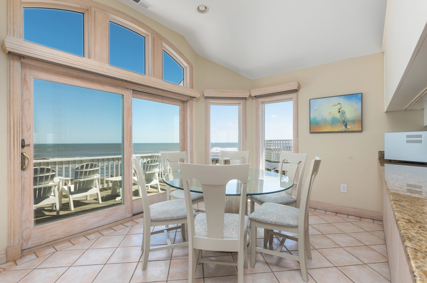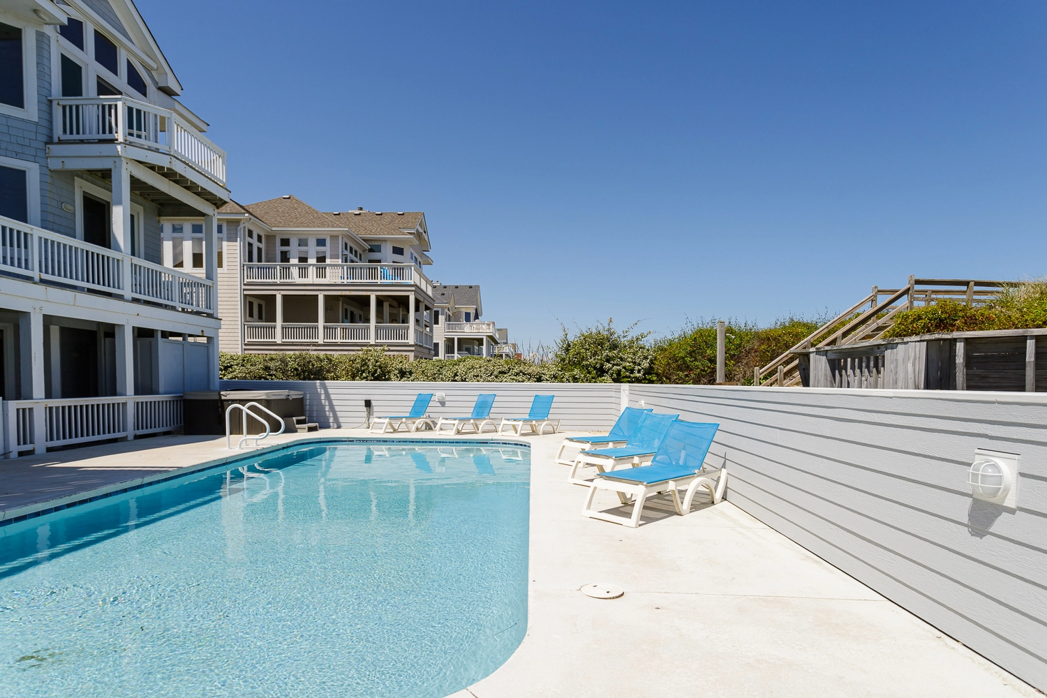 "Our group of 13 had an amazing week at Moonlight Reflection! Everyone was thrilled to be able to see unobstructive views of both sunrise and sunsets over the ocean and sound. I don't know where to begin to describe what we loved about the house. First, all 7 master bedrooms were attractive and comfortable. When a couple of our guest felt their bed was a little too firm we called and were given comfy mattress covers making us very comfortable. Maintenance was quick to resolve a couple minor issues we called about. We were VERY impressed with the organized and well equipped kitchen. Having a pantry and extra room in a tall cabinet made storing all our food easy. The two large tables accommodated our group with room to spare, leaving the third table set up for cards and games. The handicapped bedroom was perfect for our one guest and we were able to rent a lift chair (through Cloud of Goods) for her which made the week perfect for her. The elevator enabled both people and stuff (luggage and groceries) reach all floors. The living room furniture was comfy and room for everyone. Two dishwashers were great. The home felt solid and sound proofing was good. The pool was clean but cool and I think had a saline instead of chlorine system which was wonderful (one of our guest is allergic to chlorine). The hot tub was used daily by several guests and they loved it. The stairs to the beach appeared to be new which helped us find the house after our walks on the clean sandy beach. Surf was too rough to swim but we surf fished, fed the sea gulls, watched the sand crabs scurry around. We look forward to swim when we return next year. We are returning and encourage you to reserve this house...just not the week we hope to have for years to come."