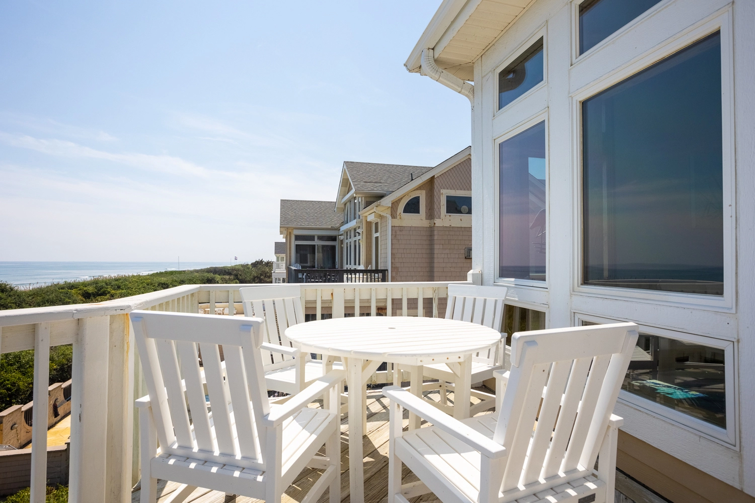 "We've been coming to Corolla for over 10 years and this house was our favorite by far. The 2 seating areas on the top floor was the favorite - beautiful sound and sunset views on one side and amazing ocean and sunrise views from the other. The kitchen is very well stocked and the house and furniture are all in good shape. The internet worked very well for everyone in the house."
