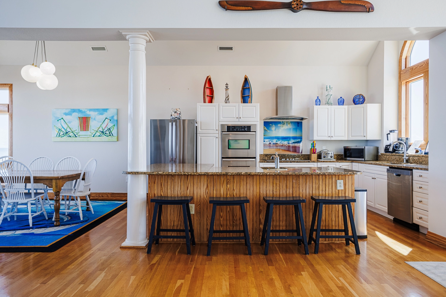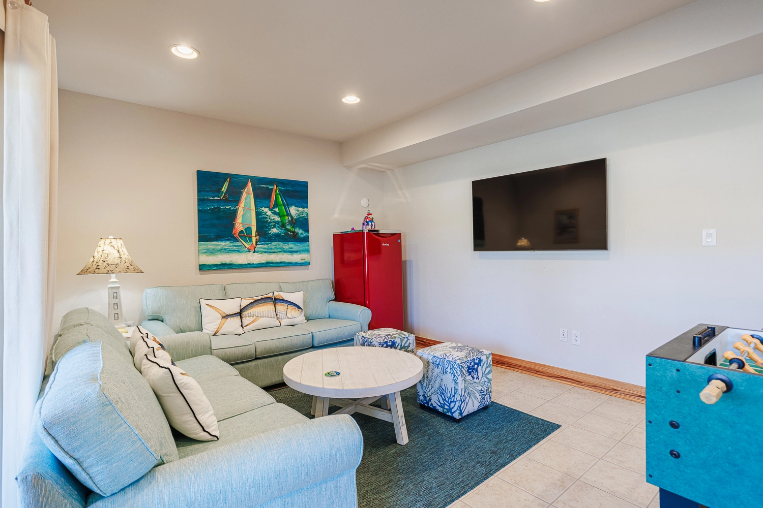 For the 2026 season, the ground floor rec room has been overhauled with 2 brand new sofas, a new coffee table and additional seating options. The kitchen upgrades include a new larger refrigerator that doubles the refrigeration capacity, a decorative backsplash behind the stove and a Keurig coffee maker. The outdoor spaces have been equally transformed, featuring 2 new Weber grills, new pool chaise lounges and refreshed dining areas designed for unforgettable meals!