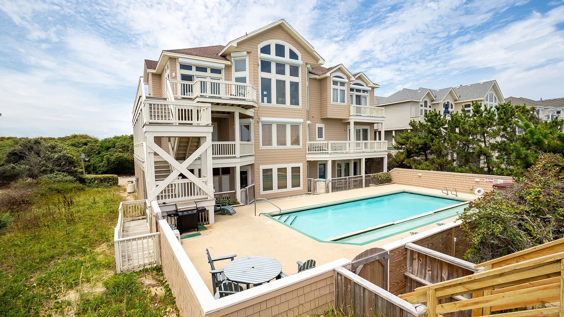 "We had a lovely time. The beach home was magnificent. Excellent ocean views and sound views. The kitchen was fully equipped with cookware, utensils, small appliances, two dishwashers, two stoves, and huge fridge! Three swivel rockers were in front of the huge windows that were very clean, we enjoyed the views! All beds were very comfortable. Hot Tub and pool were great. Twiddy representatives were so nice to deal with when the AC had a hiccup. The owners addressed the AC issue immediately. Double washer and dryer were perfect. Elevator was a huge help with suitcases, groceries. Pool table was a hit. We definitely took care of the home as if it was our own home. This is the best beach home we have stayed at!"