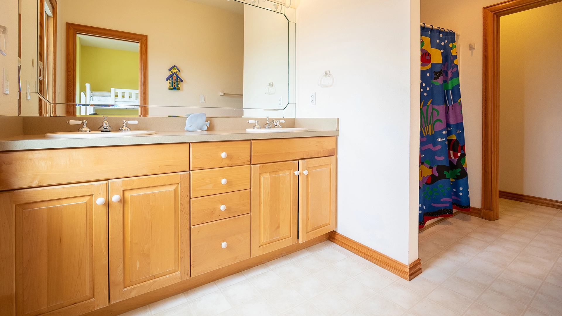 2 Bunk Sets, Semi-private bath, Shower/tub combo