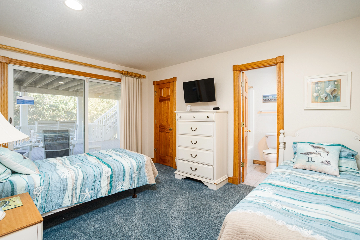2 Twins, Semi-private bath, Shower/tub combo, Deck access