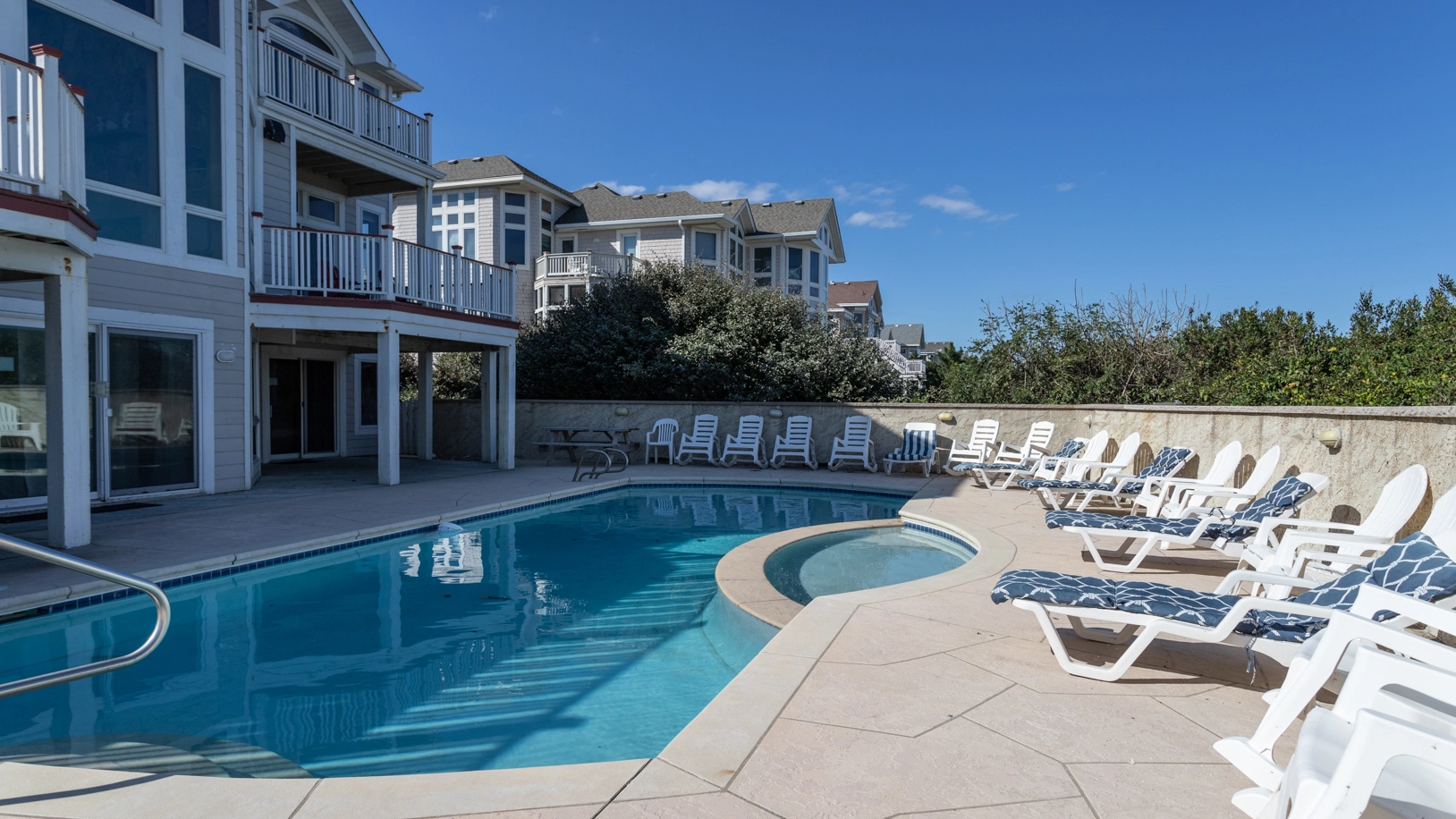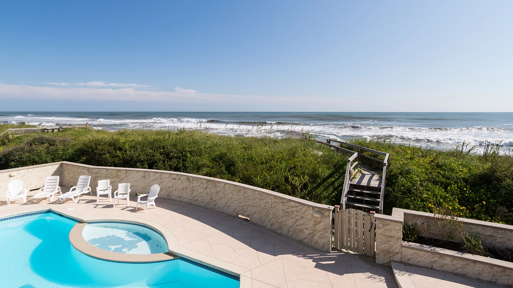 "This home was so gorgeous and had beautiful ocean views but due to the tiny bugs called midges that were swarming all the windows and doors it was hard to enjoy. We were warned about the midges by Twiddy which was kind of them but even with turning off the lights at night and closing the blinds, they were still everywhere. Upon arrival we found that one of the dishwashers wasn’t working properly, the tv in one of the sound side bedrooms didn’t work at all. The pool area would have been awesome, but those bugs were all over the water every day and we cleaned them out as best we could but it was miserable. Also the hot tub was very small and didn’t work. It was just a bathtub outside. The jet’s did not work. The kitchen was nice, but the pots and pans and some other kitchen items should be updated. The coffee pots didn’t work half the time. The beach access was short which was nice but elderly folks could not access the beach very easily. The bottom part of the steps are completely covered by sand and it’s very steep. My parents were not able to go down to the beach. In conclusion this home is gorgeous but it needs some TLC by the owners. Twiddy was awesome and answered our maintenance call immediately."