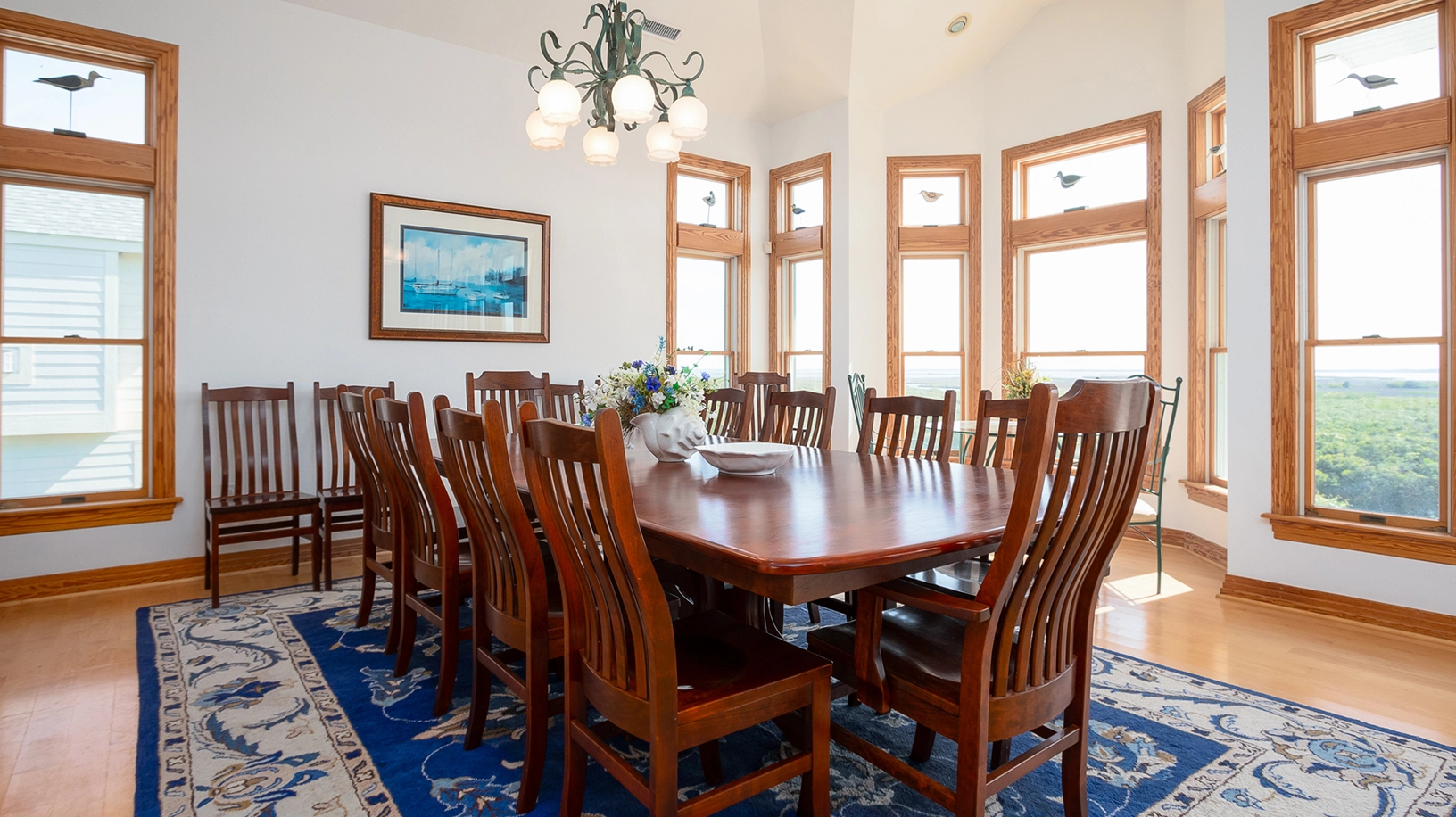 "Plenty of room for a large group. Loved the fact that you can see the ocean from one side of the house and the bay from the other. A great week even though the weather didn’t cooperate!"