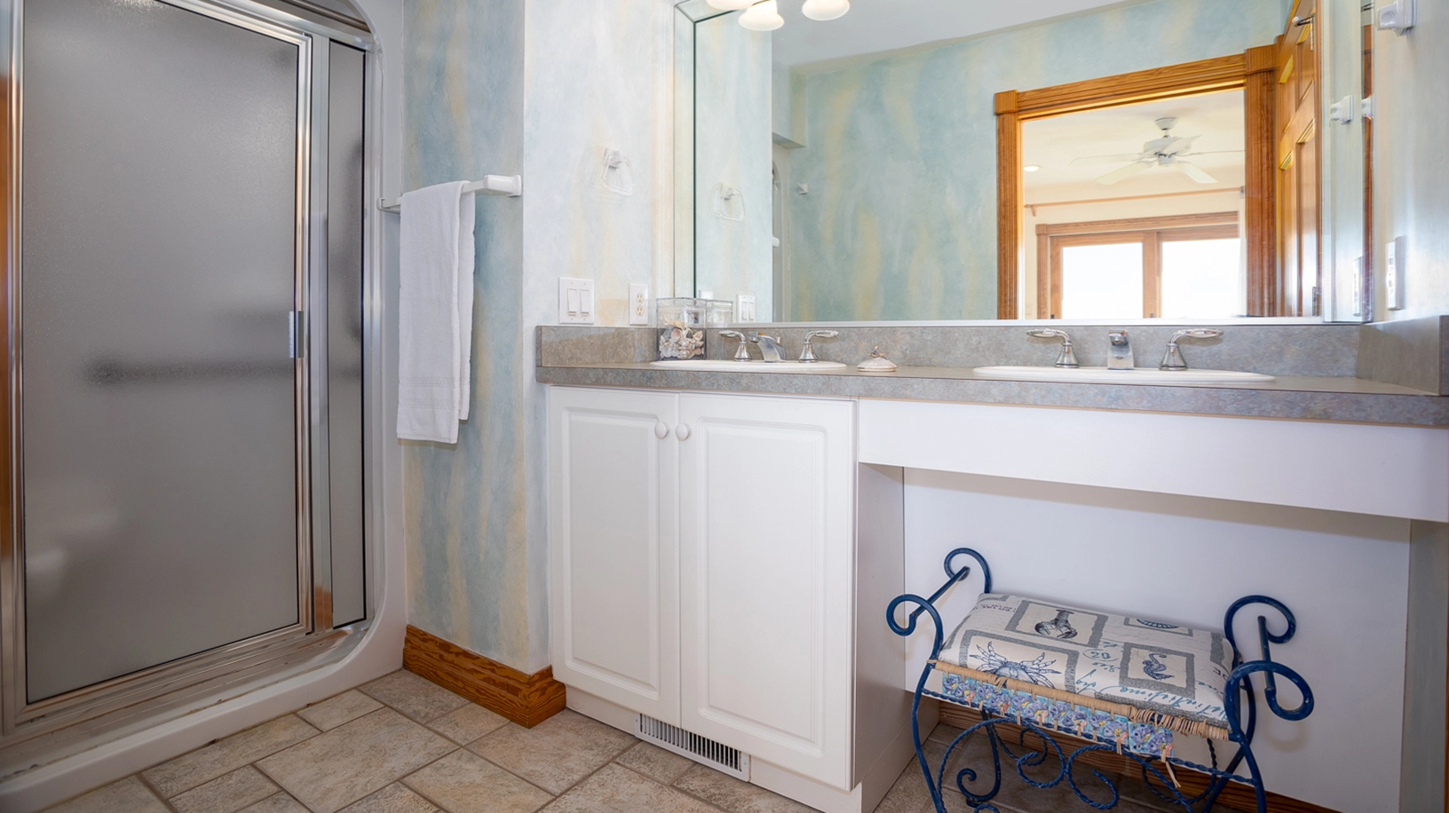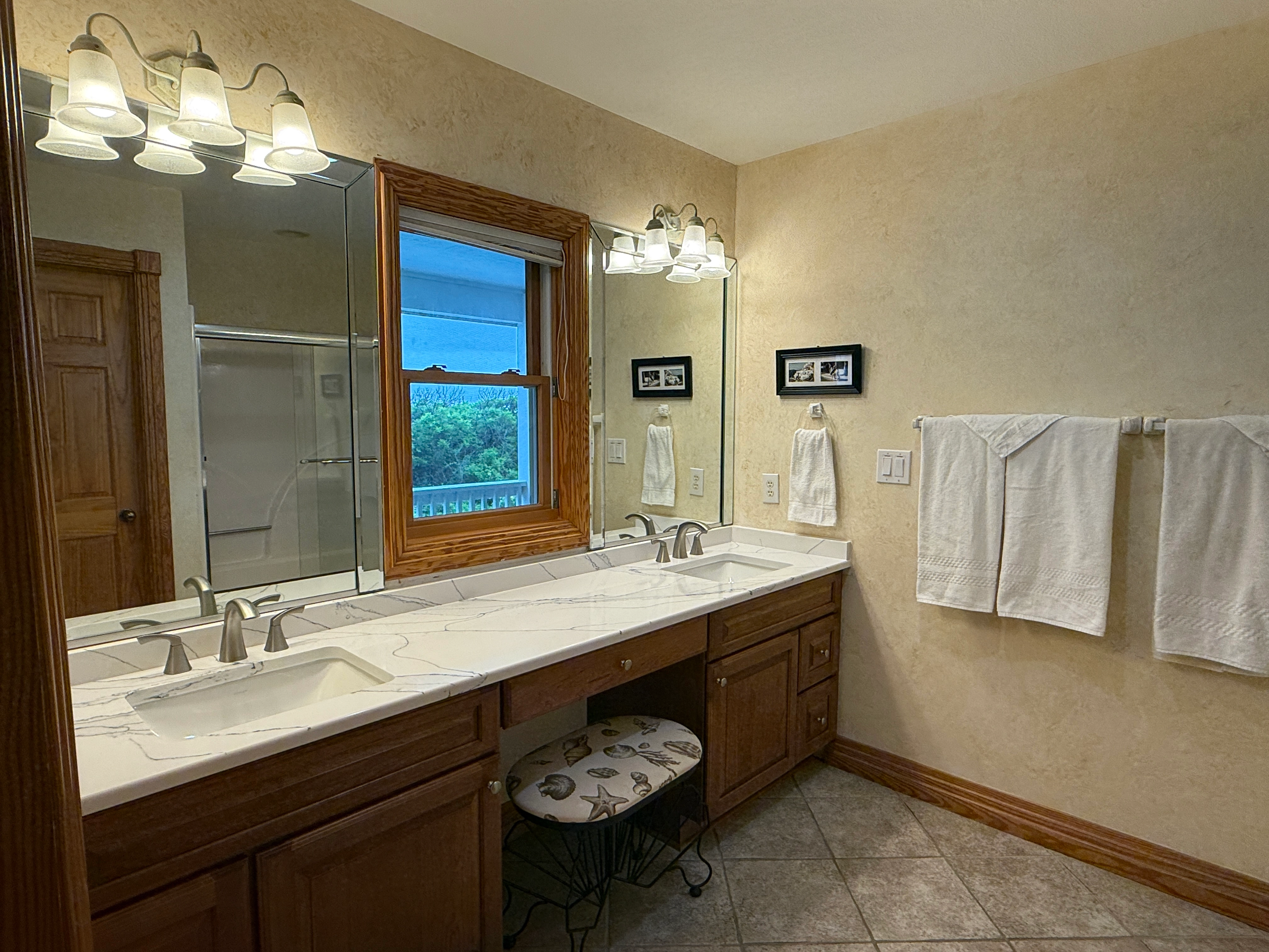 Oceanside, King, Shower/tub combo, Vanity with granite counter, Oceanside deck, Private soundside deck