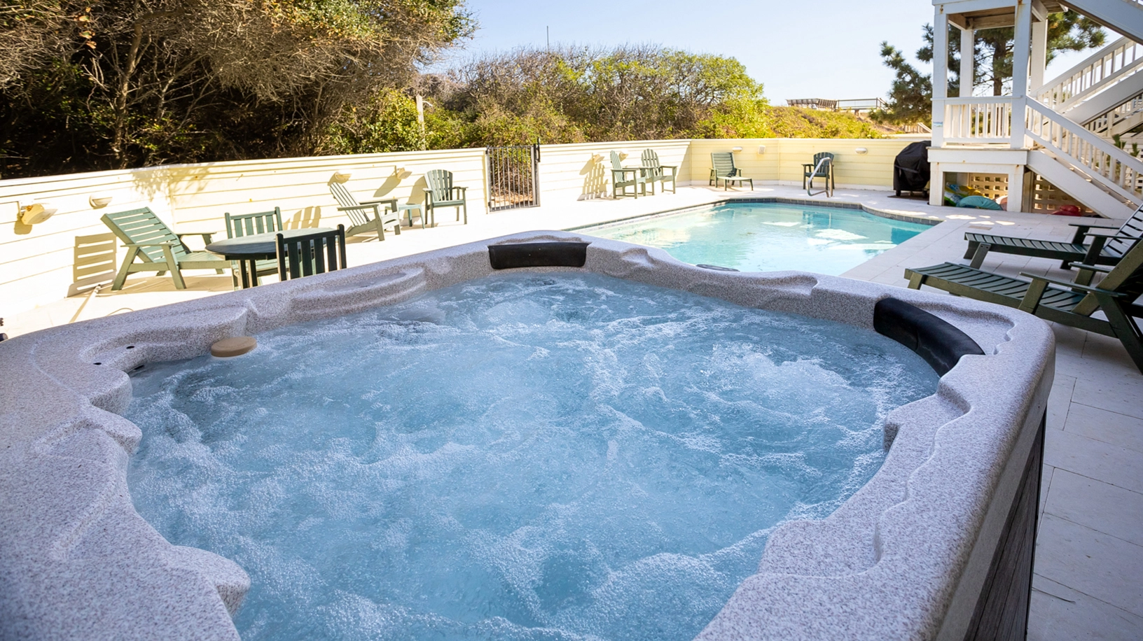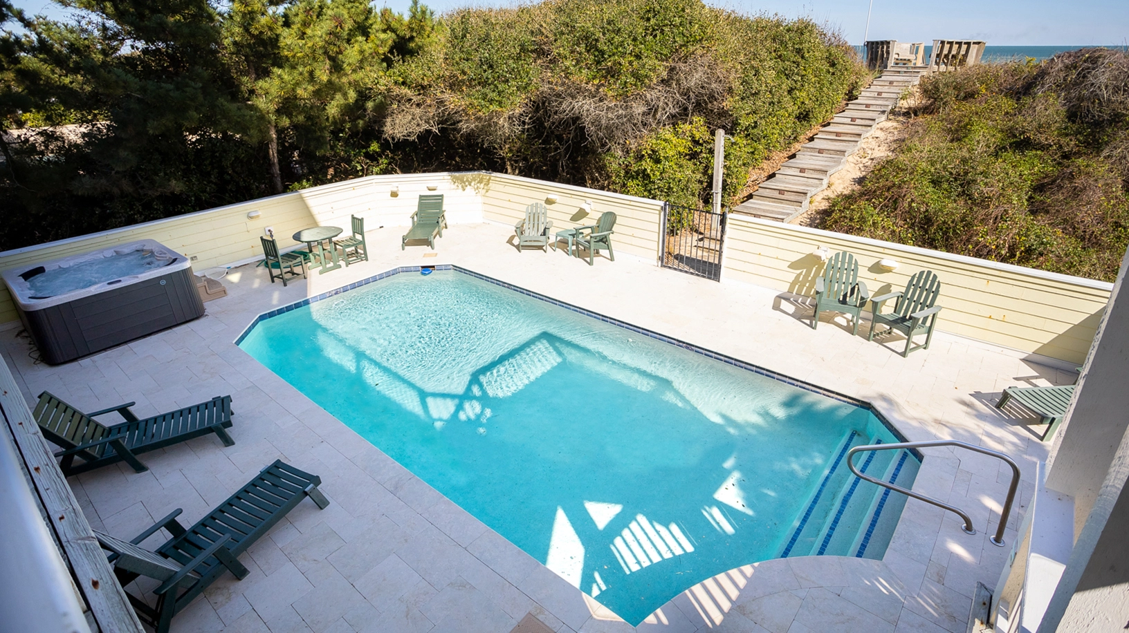 "Convenient location almost halfway between dining and shopping in both Corolla and Duck. Loved the keyless entry. Pool area had fallen leaves everywhere. It was windy, but we battled with leaves around and in the pool all week."