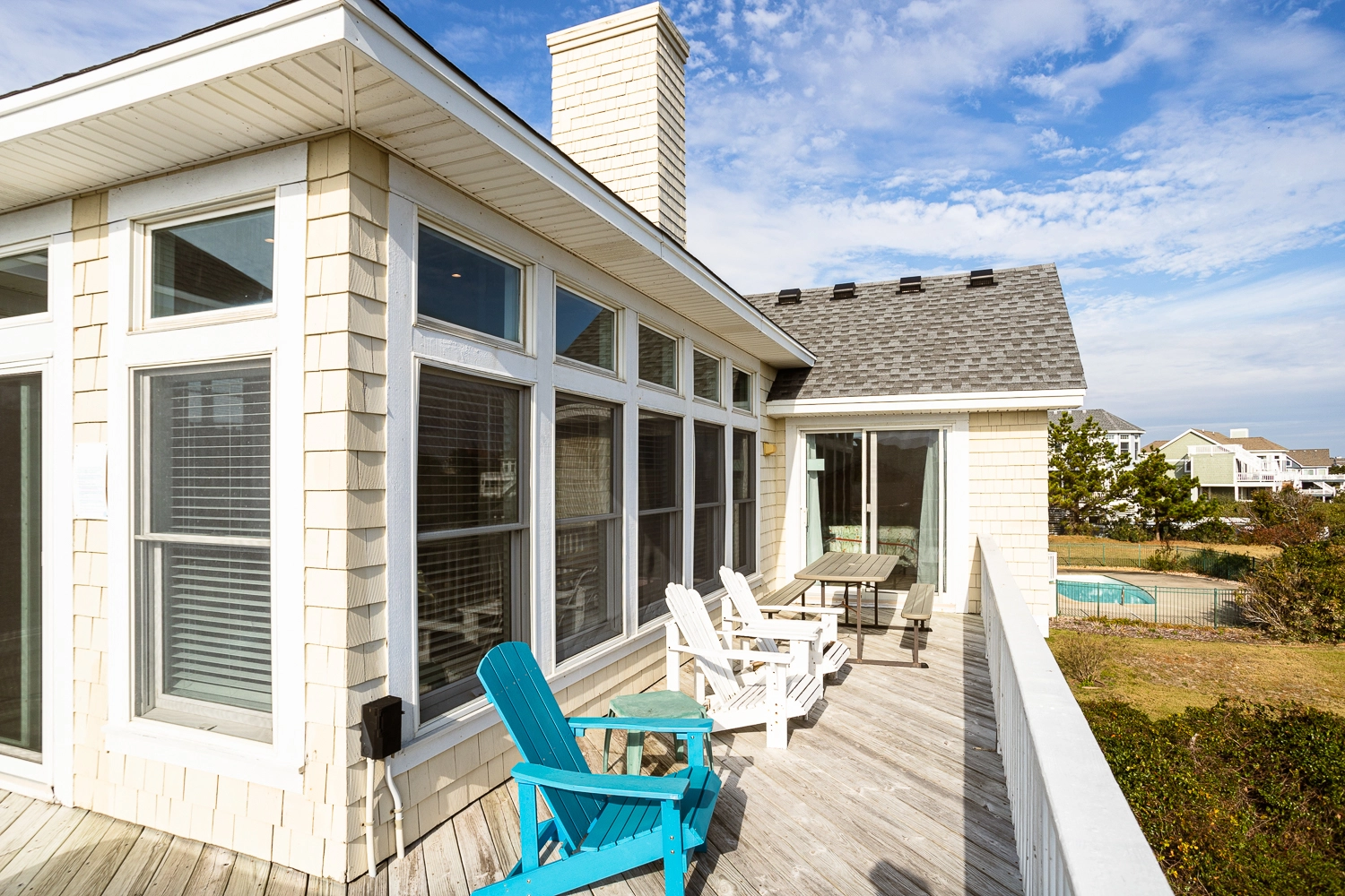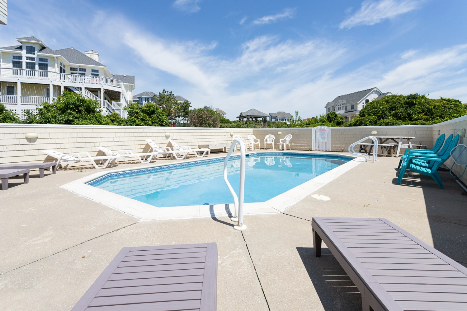 "We really enjoyed the pine island community which permitted access to the community pool ahead of check in. The community pool gave us something to do while we waited for the house to be ready. Community facilities were clean and were a added bonus. There is a community playground the kids enjoyed. The actual house, Sea Gem, had all the items we needed - with the kitchen being stocked with many pots and pans and provided plenty of plates and silverware to feed a large crowd. The house even provided some beach and pool items to utilize. Additionally, the layout of the house was perfect for 3 families with multiple kids. Each family had a queen or king bed and twin beds for the kids. The walk to the beach was relatively short, with only one set of stairs to get over the dunes; this made carrying the beach items manageable. A wonderful house and location to enjoy the beach."