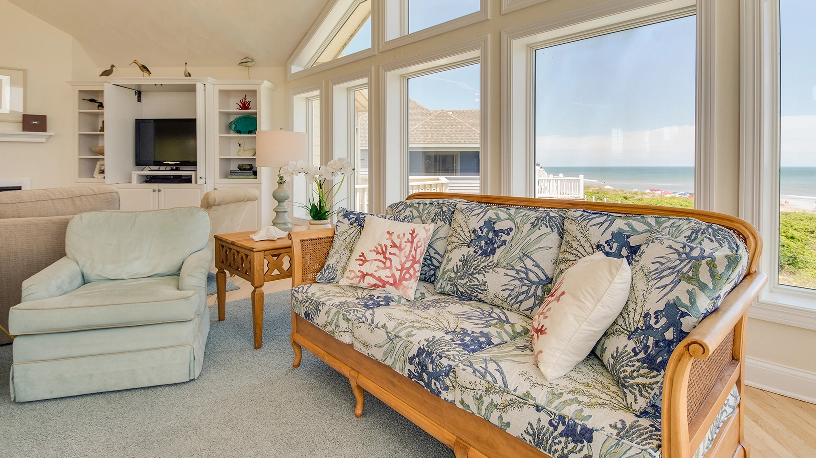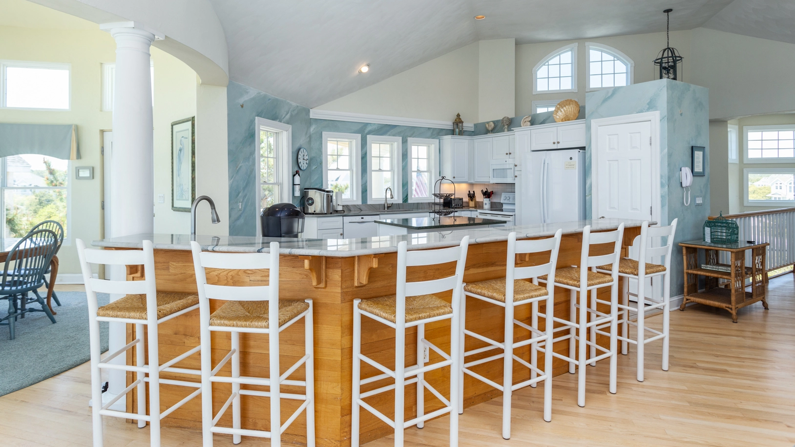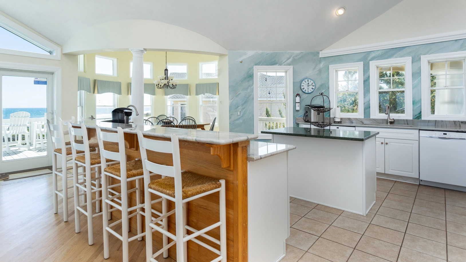 "I loved the wide steps going up to the top level. I love how easy it was to go to the beach on the private walkway. I loved the huge shower in the master but I also love baths and there was not a tub in the master suite. I loved the huge kitchen which was well supplied and organized. I did not like the small television's in each bedroom and the master."