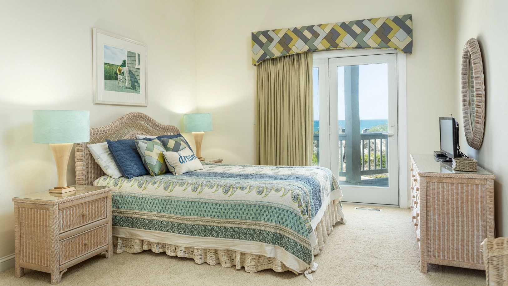 Oceanside, Queen, Semi-private bath, Standing shower, Deck access