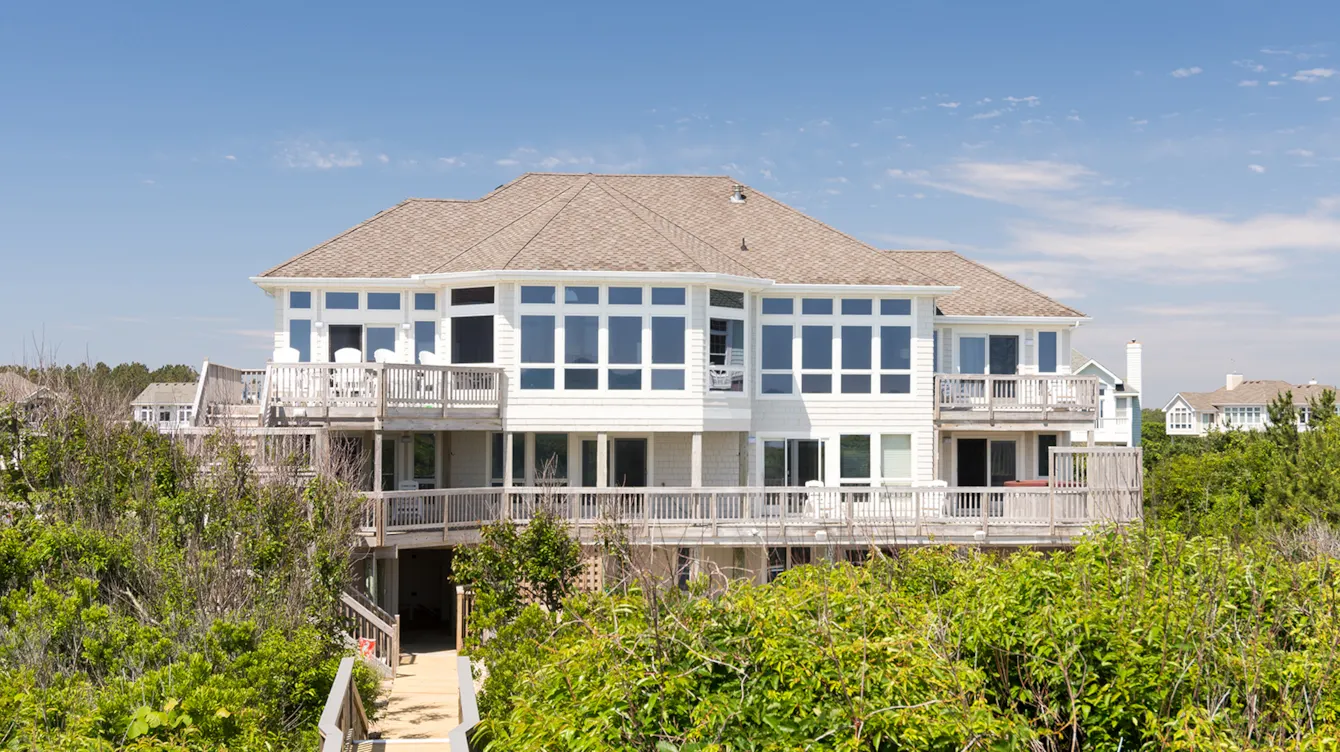 "Can't beat the location right on the beach. Great views from the upper two floors. House is well maintained. Large pool and ample outdoor furniture."