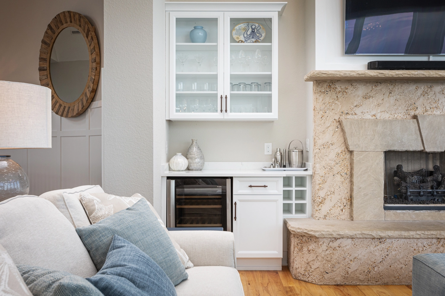 Great room and wet bar with beverage refrigerator; kitchen with two refrigerators, two dishwashers, double ovens and a six burner gas stove; two dining areas.
