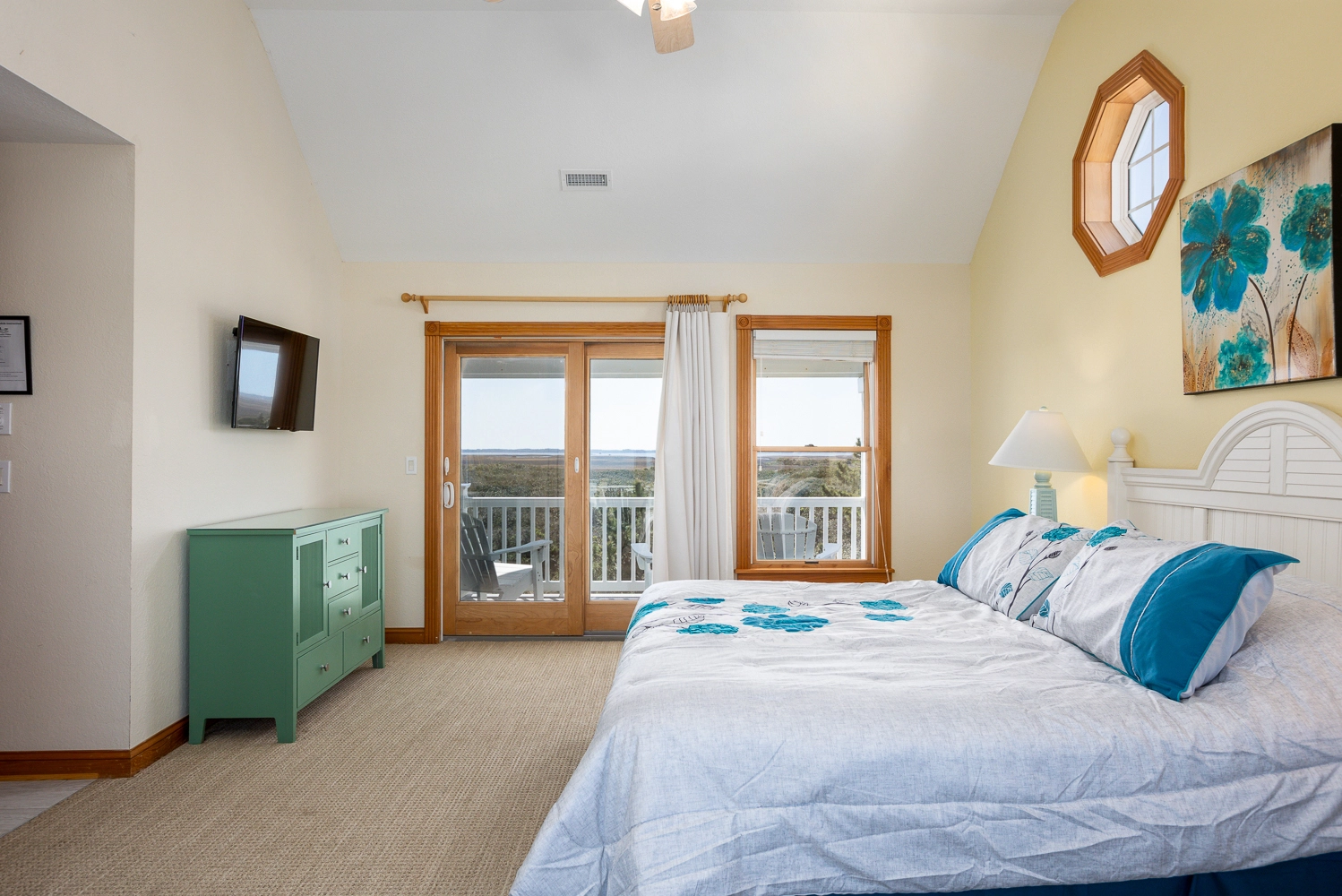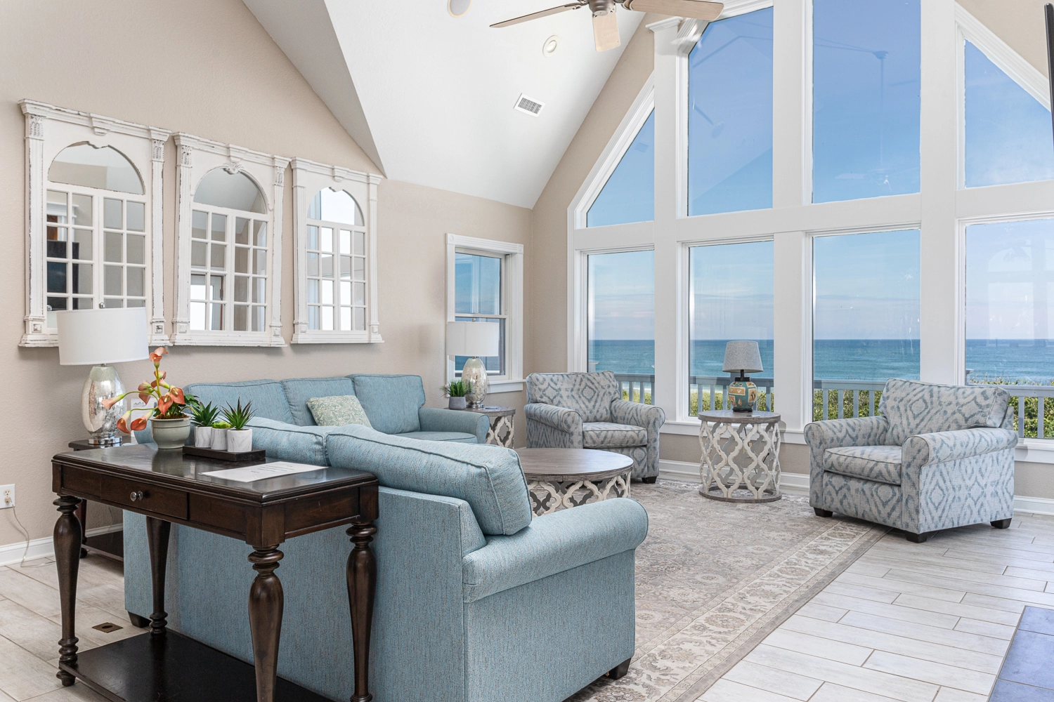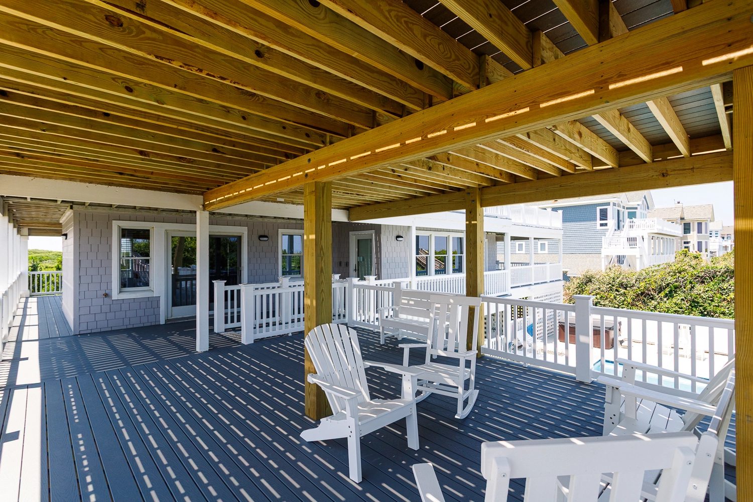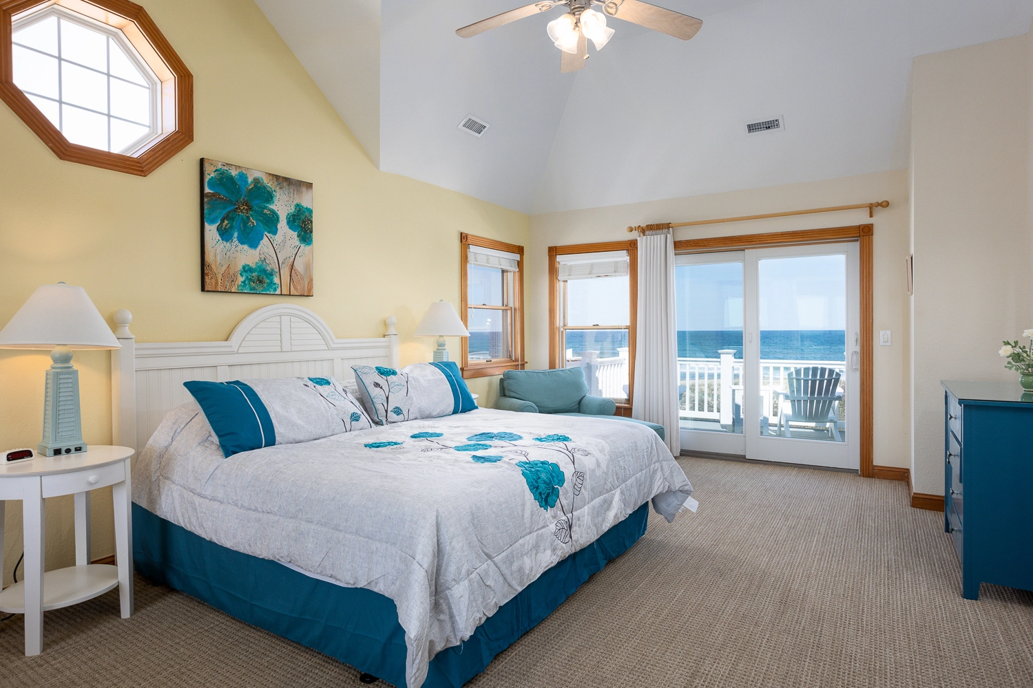 "With a view of both the sound and the sea, this house is in a league of its own. It has every feature you could want for a wonderful vacation. The unparalleled exclusivity of the Pine Island community provides peace and privacy we've found nowhere else. The house's expansive decks are not only practical and well-constructed, but they provide just enough shade on the pool for even the fairest of skin to enjoy. Of all the houses we've rented with heated pools, this one is the warmest and most consistent. Using the house's private walkway, it's just a short walk over the dunes to get down to the beach. The cabana service provides a extra level of convenience that we truly appreciate - alleviating the need to wrestle with a tent and chairs every day and saving additional room on the car ride down. Inside, the kitchen is equipped with every appliance you could want; and the theater room and elevator are a huge hit with our older guests! For a house so peaceful and far away from any noise, it's still close to the grocery store, ice cream shop, and anything else you could need. This was our second year in the home and we already can't wait to come back next year!"