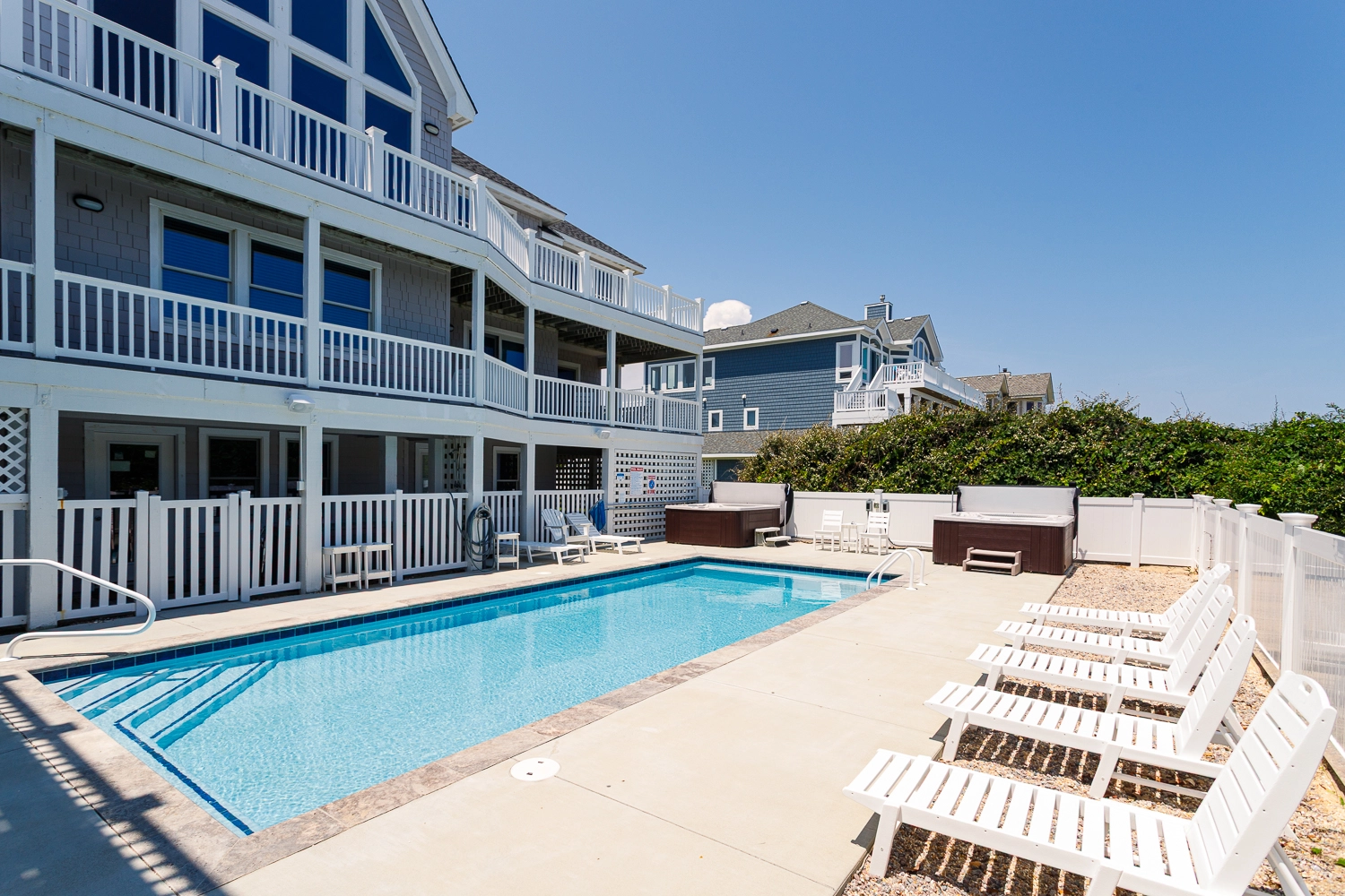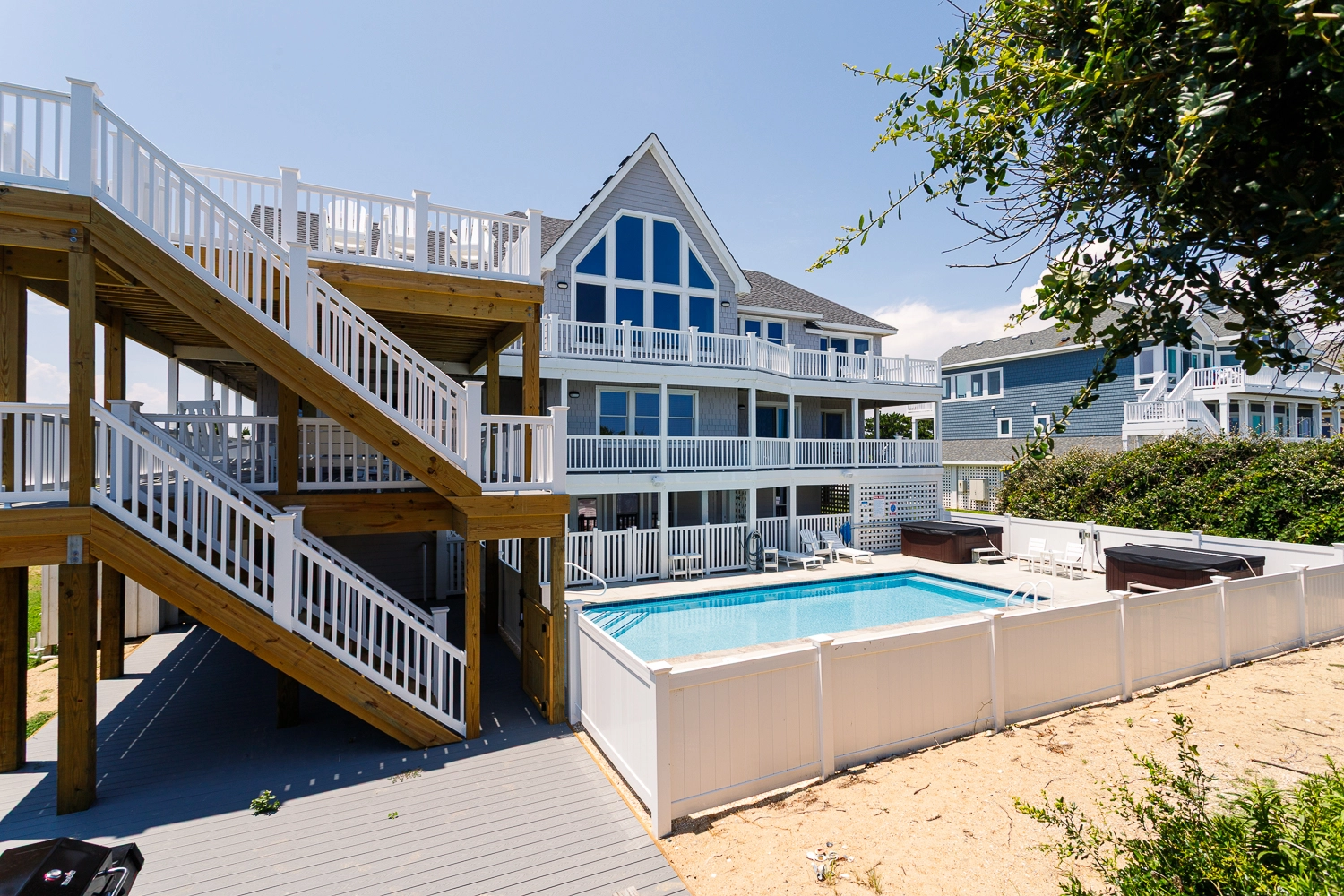 "Great value in a large beautiful home. We love to be in the area where there are no other rows of houses between the ocean and the sound. The pool is deep enough, and the double hot tubs are great. Also love that we could bring our dogs for no additional fee"