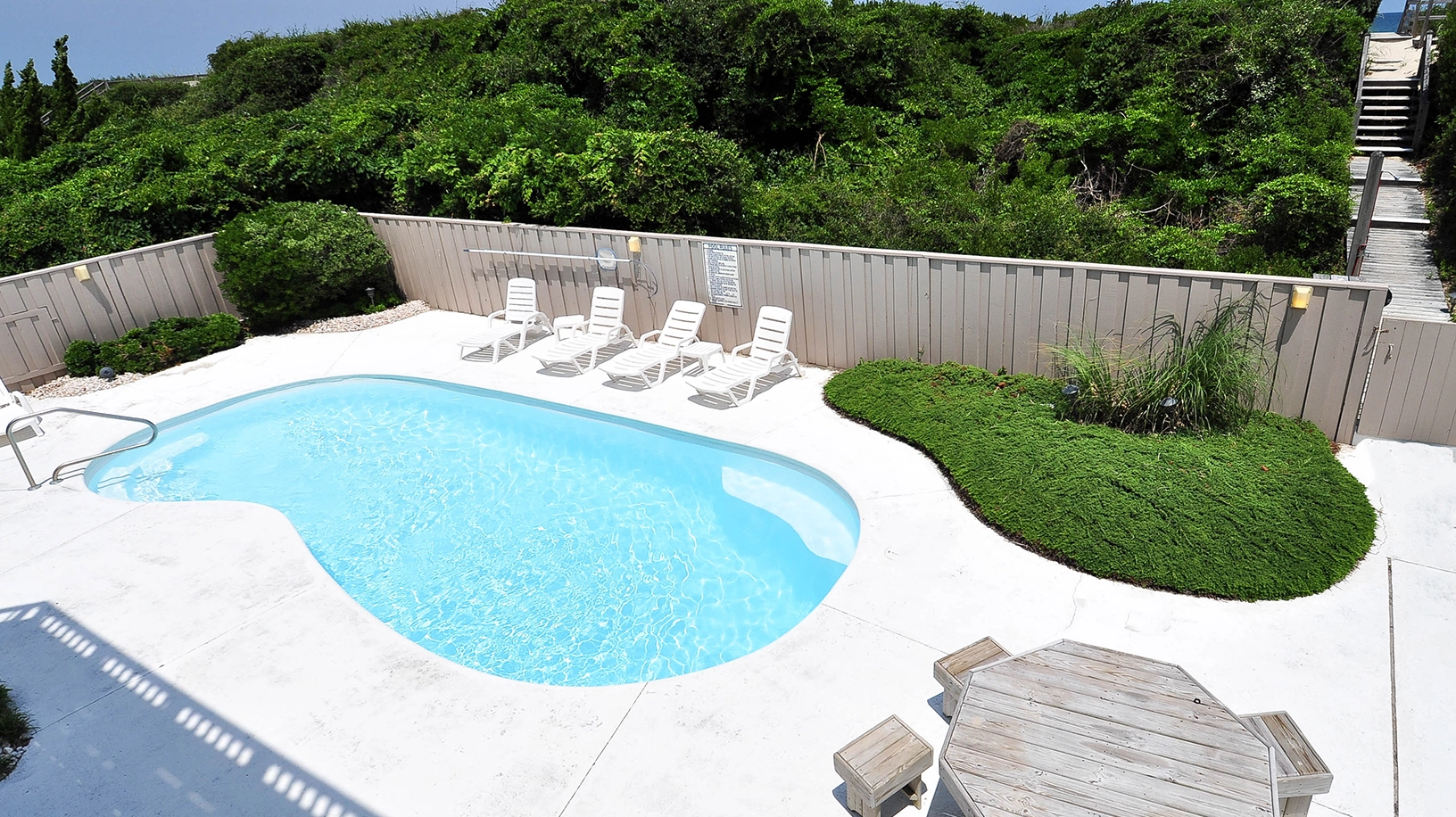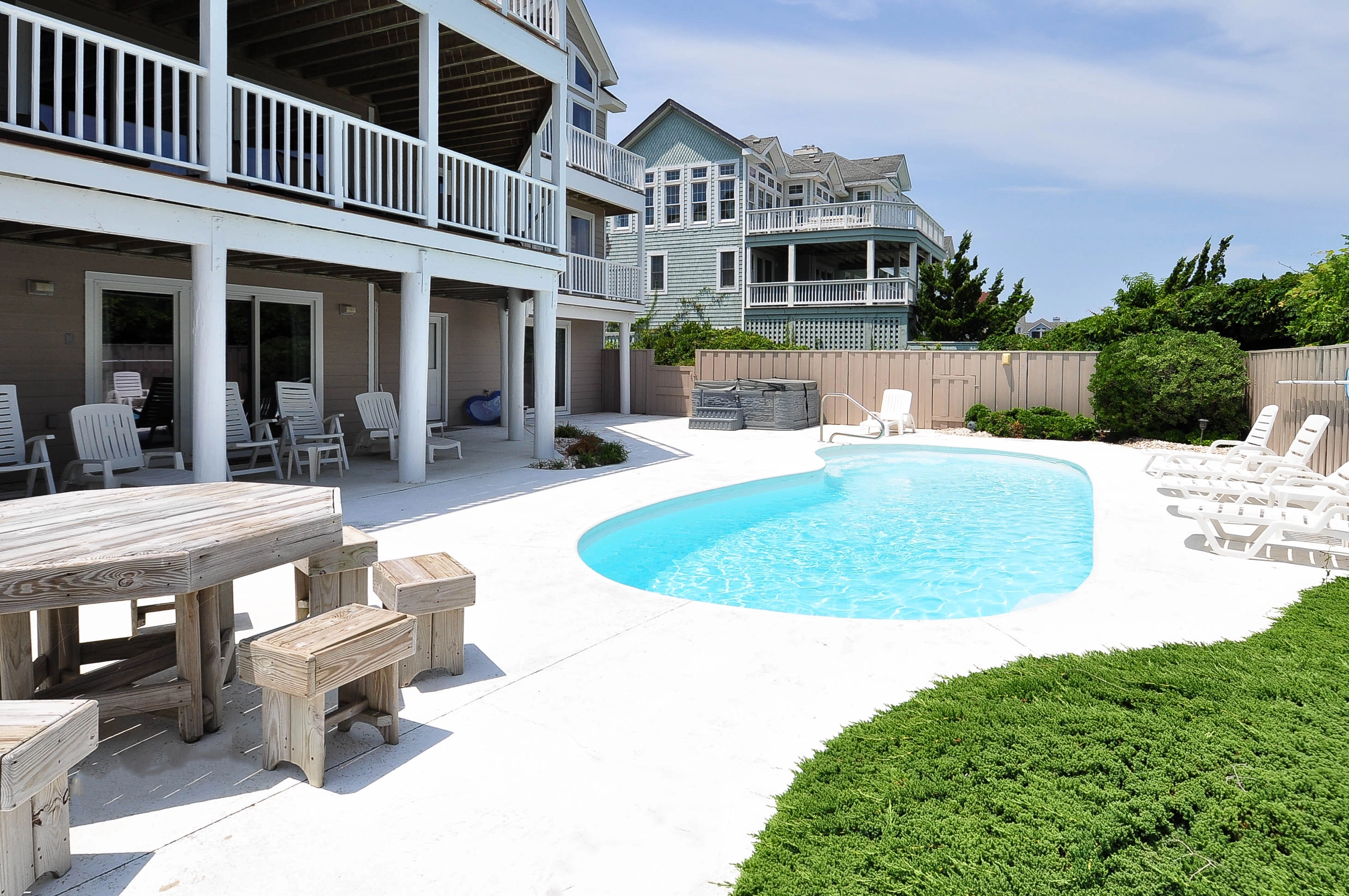 Theater room with stadium seating; large game room with pool table and wet bar; laundry. Outdoor features include a hot tub, private pool, two outside shower rooms and a private dune deck.