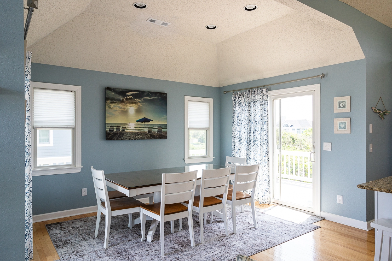 "Location Location Location. This house was the perfect spot. Far enough north to be out of the busy Duck area and yet south of Ocean Sands and Currituck. All within reach though. It's a narrow part of the island so the beach wasn't packed and we were able to pleasantly claim our spot each day. The walk was so short and convenient the young kids could pop back for lunch or toys. The pool was a great perk to allow the kids to keep playing even after the parents had surrendered and wanted to return home for happy hour. Good updates!"
