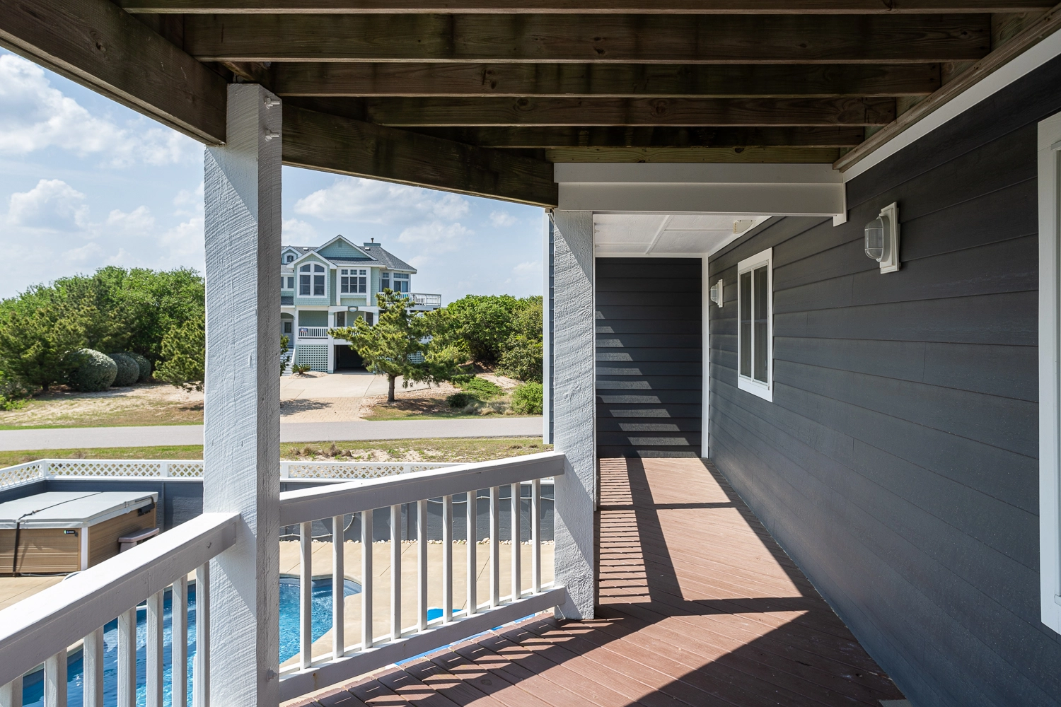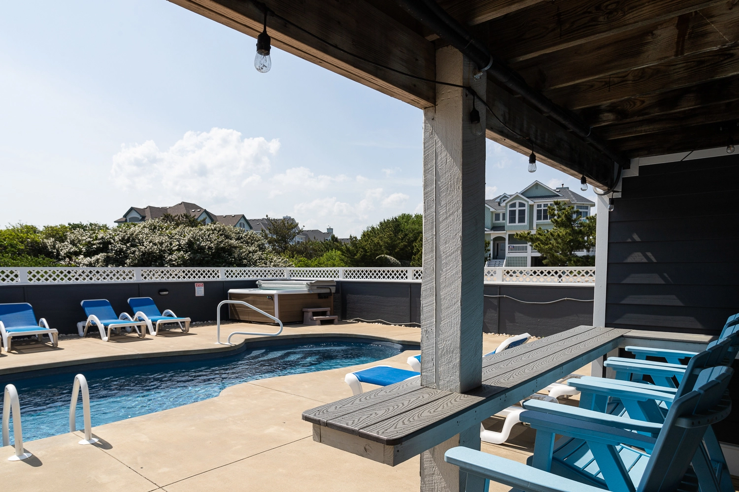 "We loved the location to the beach and Corolla. We also really loved the pool and hot tub for our non-sand lovers. Having chairs and wake boards provided was a plus, and the breezeway/Tiki Bar was perfect for dinners near the grill."