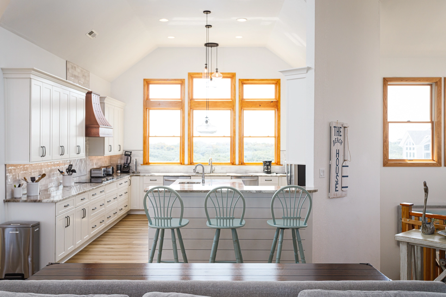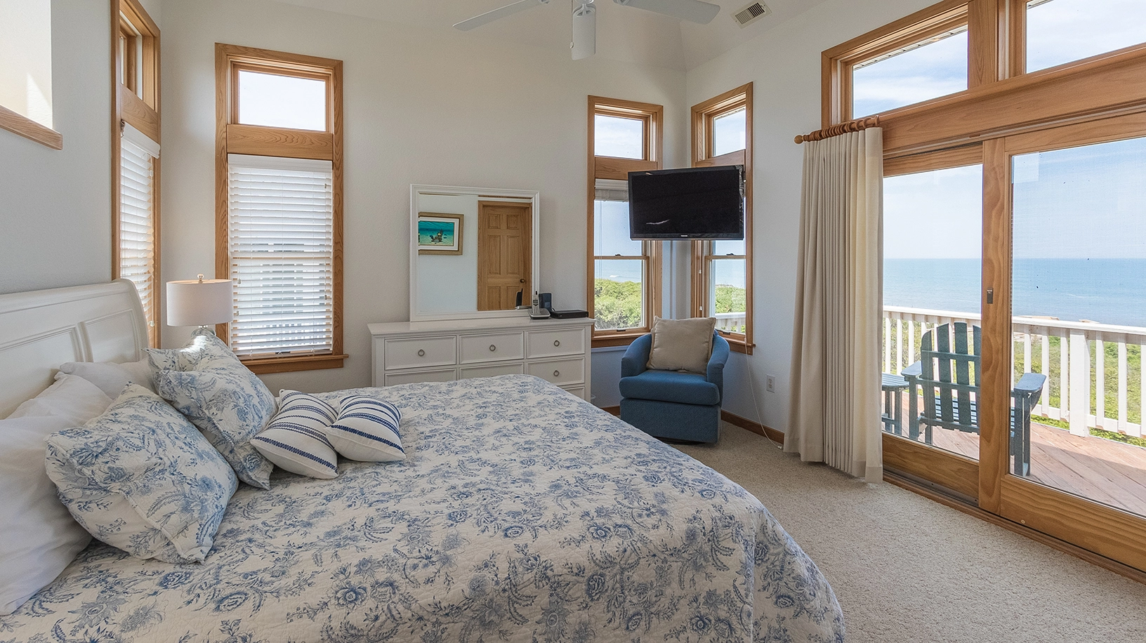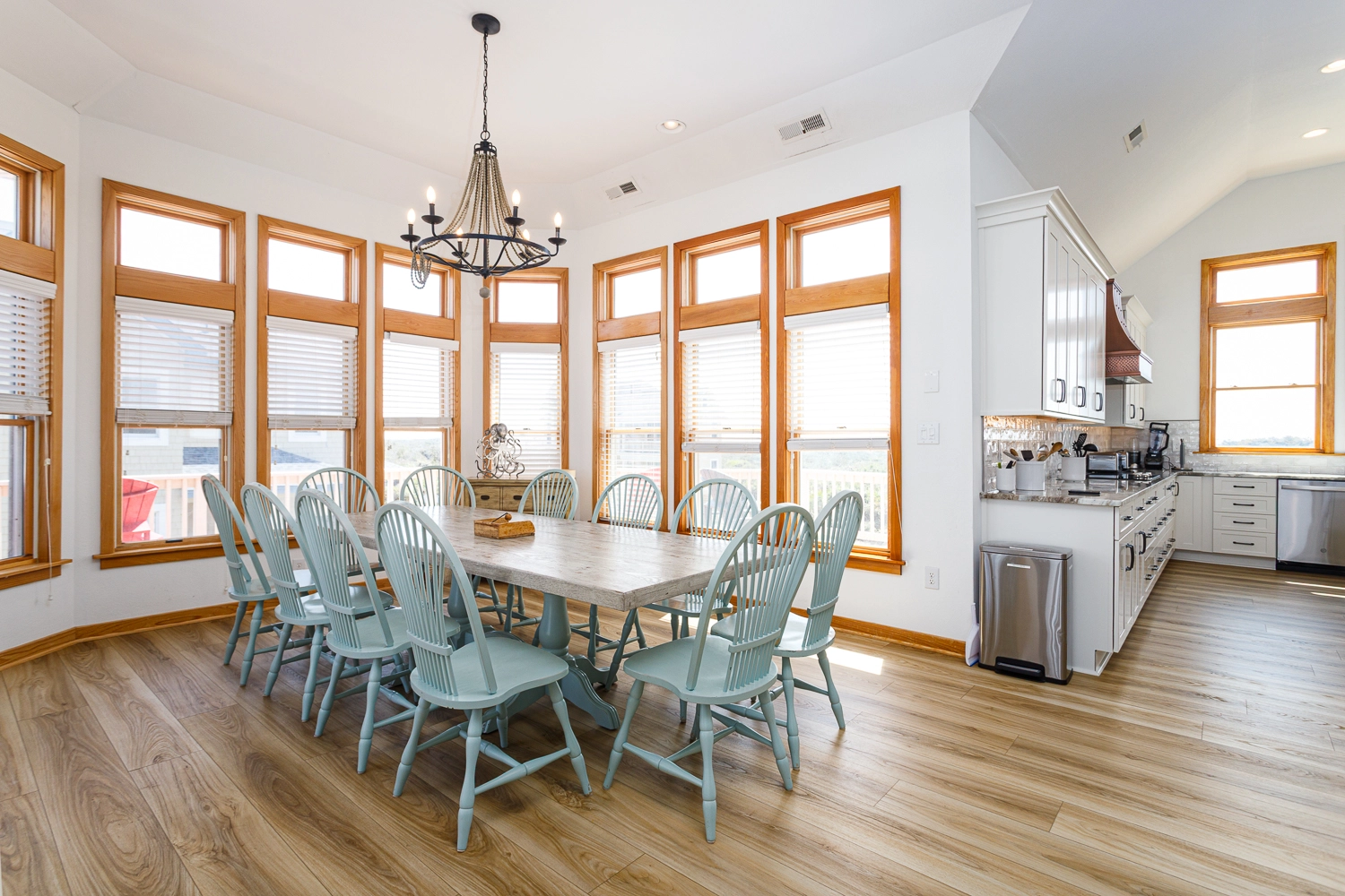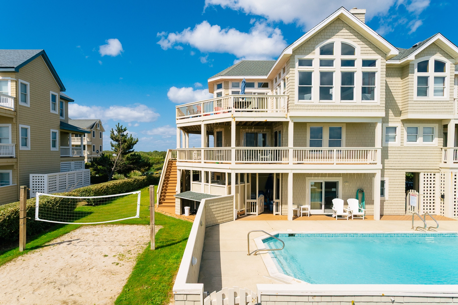 "Large well appointed bedrooms, awesome decks, everything you could think of needing in the kitchen, lots of bathrooms, and the views - beautiful!! Lovely pool, lots of beach chairs and only steps from the beach. Other than my fitted sheet kept slipping off each night and the fact that Hurrican Ian blew through (powerful but also beautiful) so there was some leakage around several windows and sliding doors - but we called Twiddy and they came and dealt with the issues ever so quickly. Ice maker didn't work but they were ordering a part so should be good for the next family. Everything was great for our vacation. - Would definitely stay here again!!"