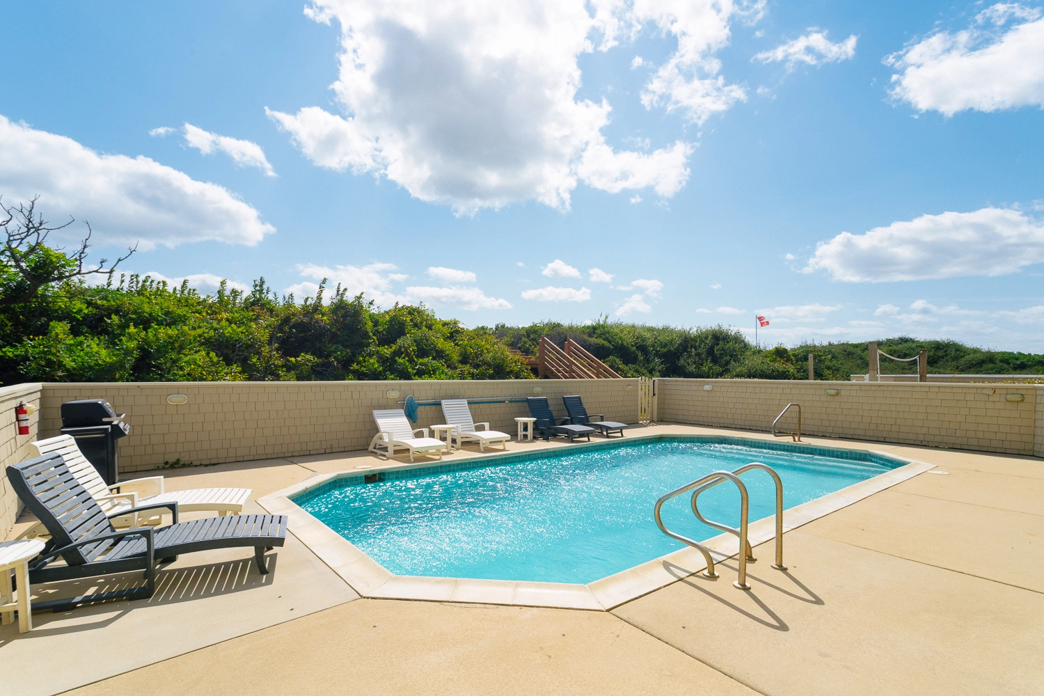 "This was our first time staying at Great Escape II and it definitely won't be our last! The home was very comfortable and the new updated kitchen was amazing and fully stocked with every kitchen item imaginable. The pool area was really nice and our family enjoyed jumping in after a hot day on the beach. The only two complaints would be the the floors were still dirty when we arrived and the grill was not working. Luckily, there was a broom so we quickly fixed the floor situation. Twiddy was extremely helpful with the non-functioning grill and dropped off a loaner so we could have our cookout. All in all, it was a great week at Great Escape II!"