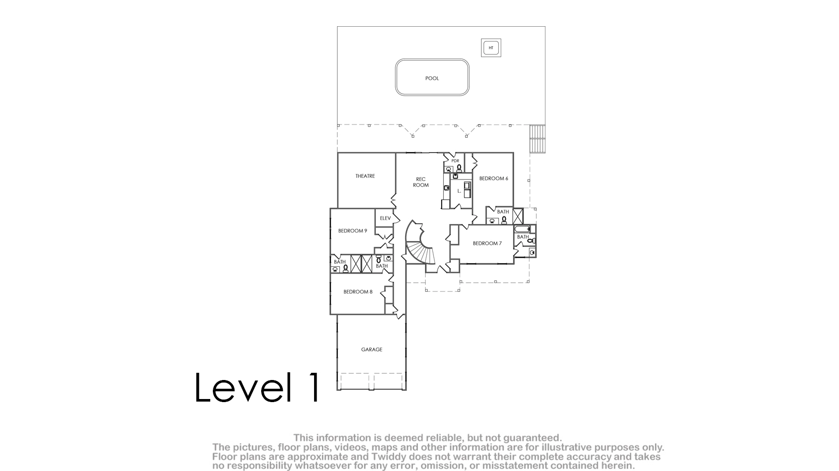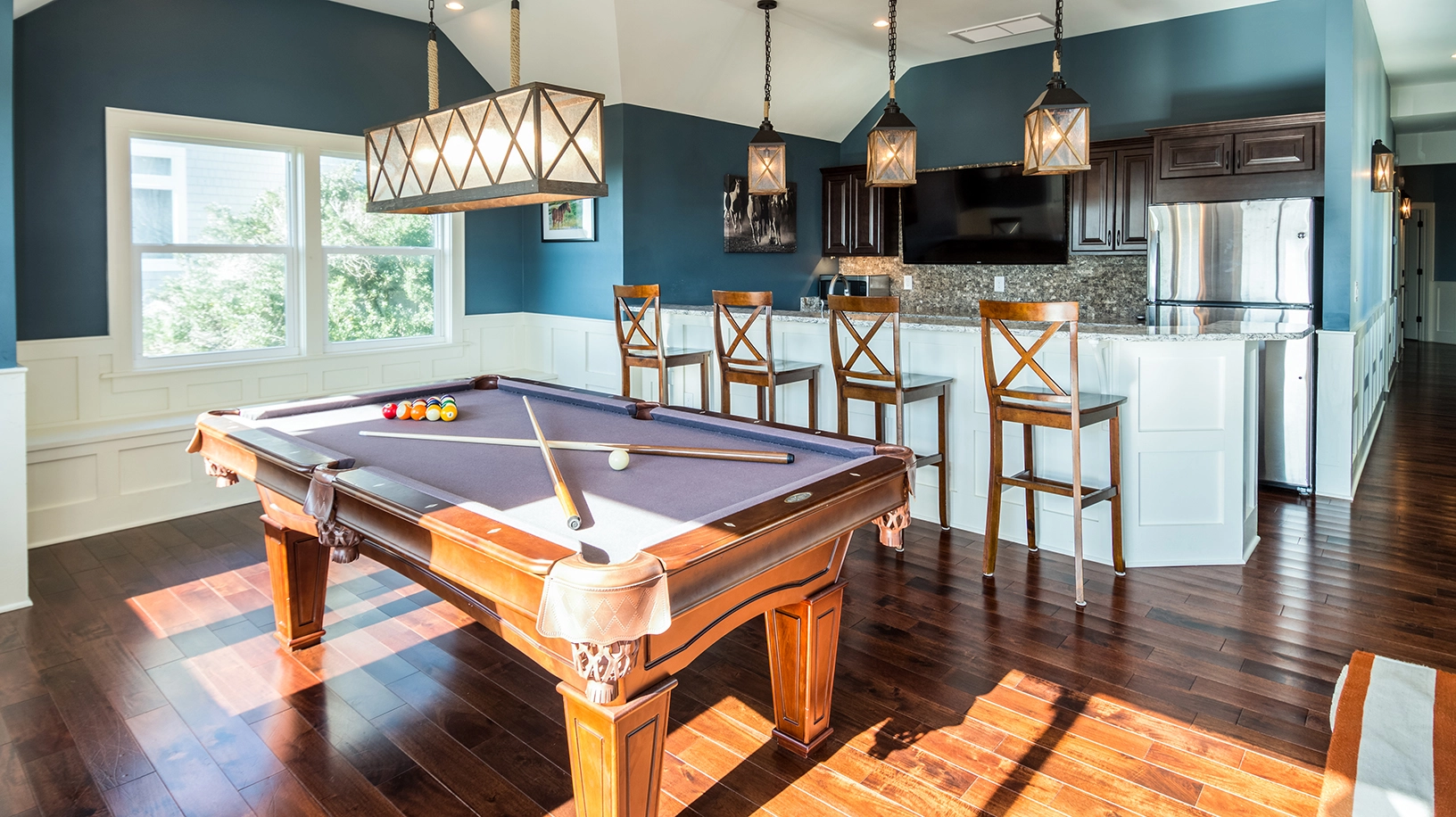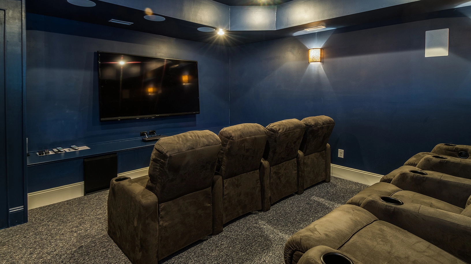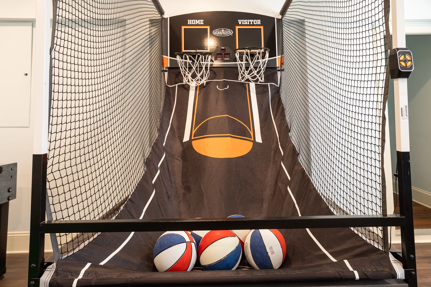 Theater room; game room with foosball, arcade game and kitchenette; laundry.