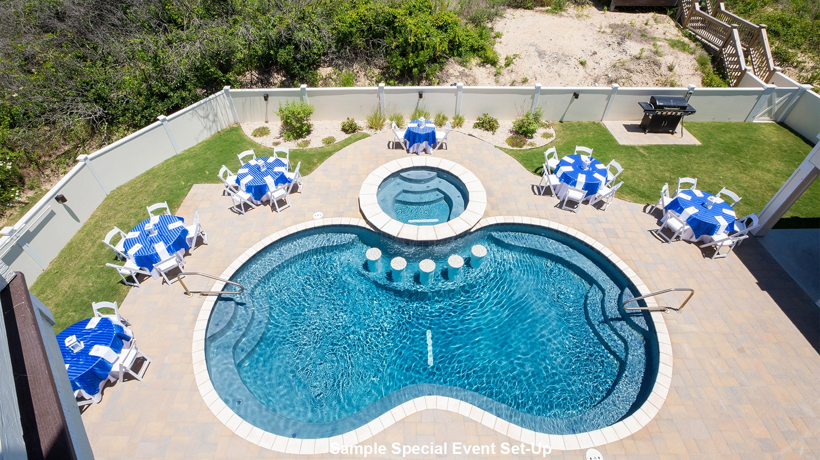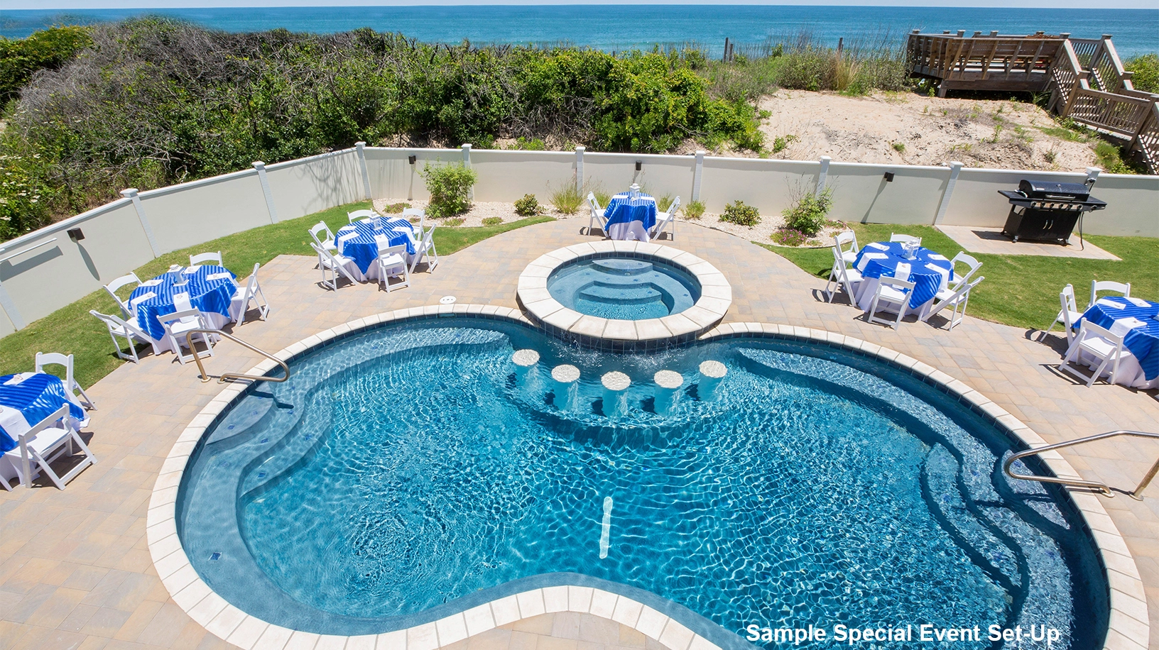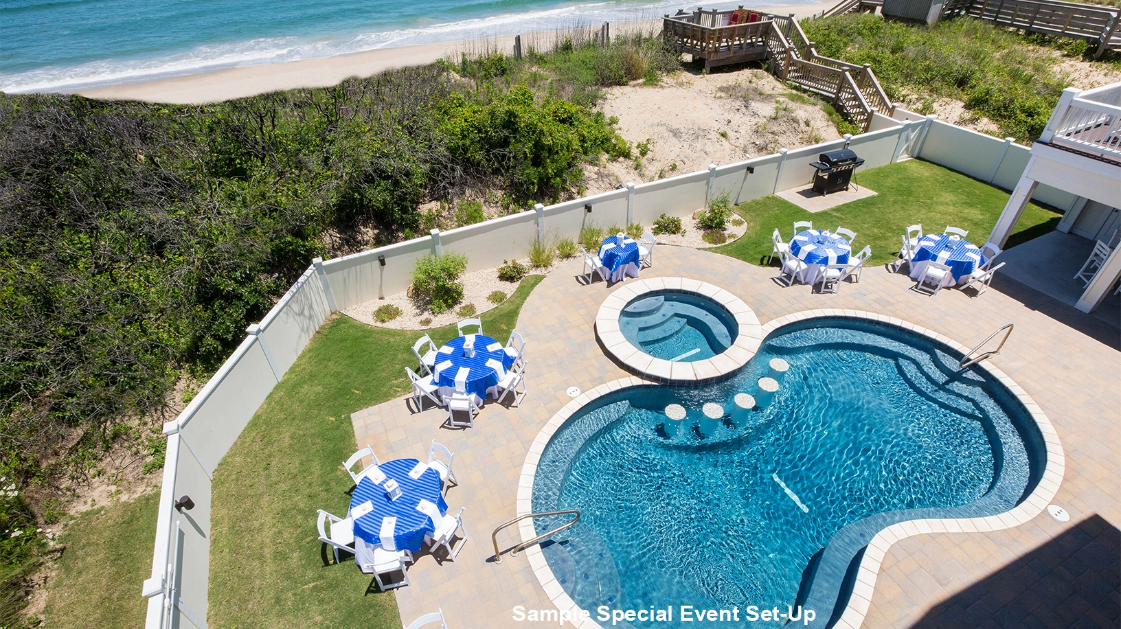 "This home is beautiful, with absolutely breathtaking views of both the ocean & sound. We recently hosted our very small wedding here, and it was everything we could’ve hoped for. However, there was a substantial special event fee that was imposed, and I thought it would’ve went towards sprucing the place up a bit- (deep clean, fixing the 2 broken sliding doors that were being held shut by a block of wood, getting black scuffs off multiple walls, clearing the pool area of cigar butts & other trash from previous tenants, getting black fingers prints off the doors), but that wasn’t the case- we did all of that (aside from fixing the doors) ourselves prior to the wedding- not sure what the fee was for? Possibly incidentals? Also, there are some areas of the home that need way more attention- mostly the outside gardens. Other than that, we do have plans to rent this property again... and have given other family & friends the rental info, as they too wish to book in the future. Also, the home owner had a tower of pies delivered from Tommy’s market in Duck, which was a nice, and unexpected treat!"