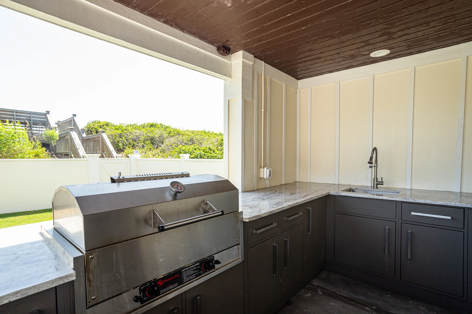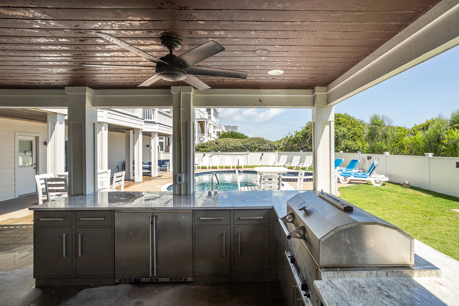 "The large open kitchen, the outdoor kitchen, the game room, the theater room, the pool and hot tub, just about everything!"
