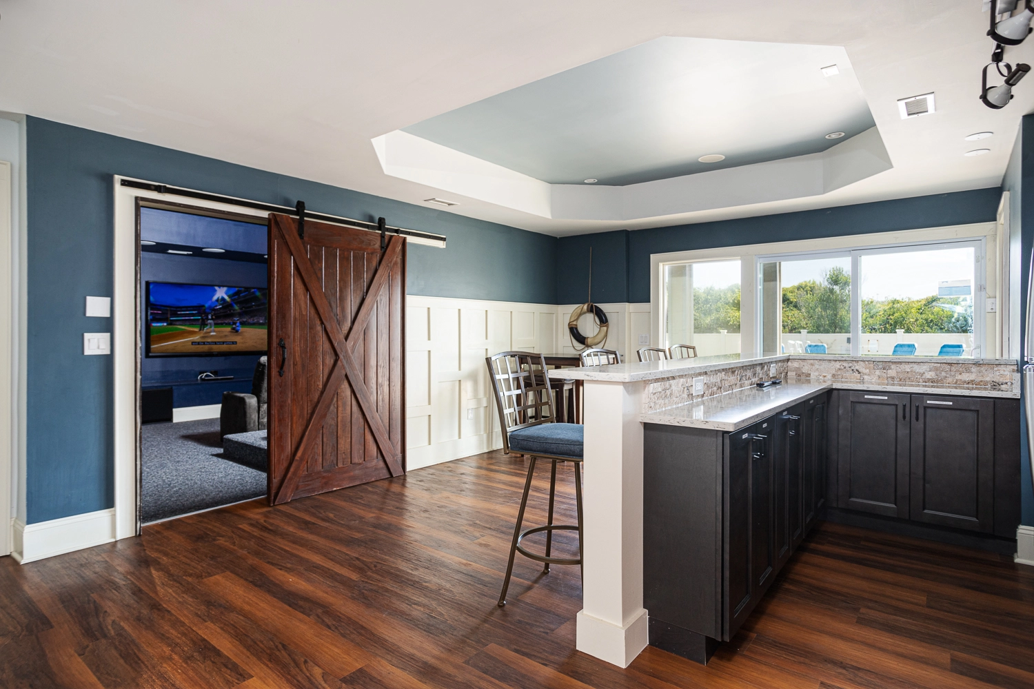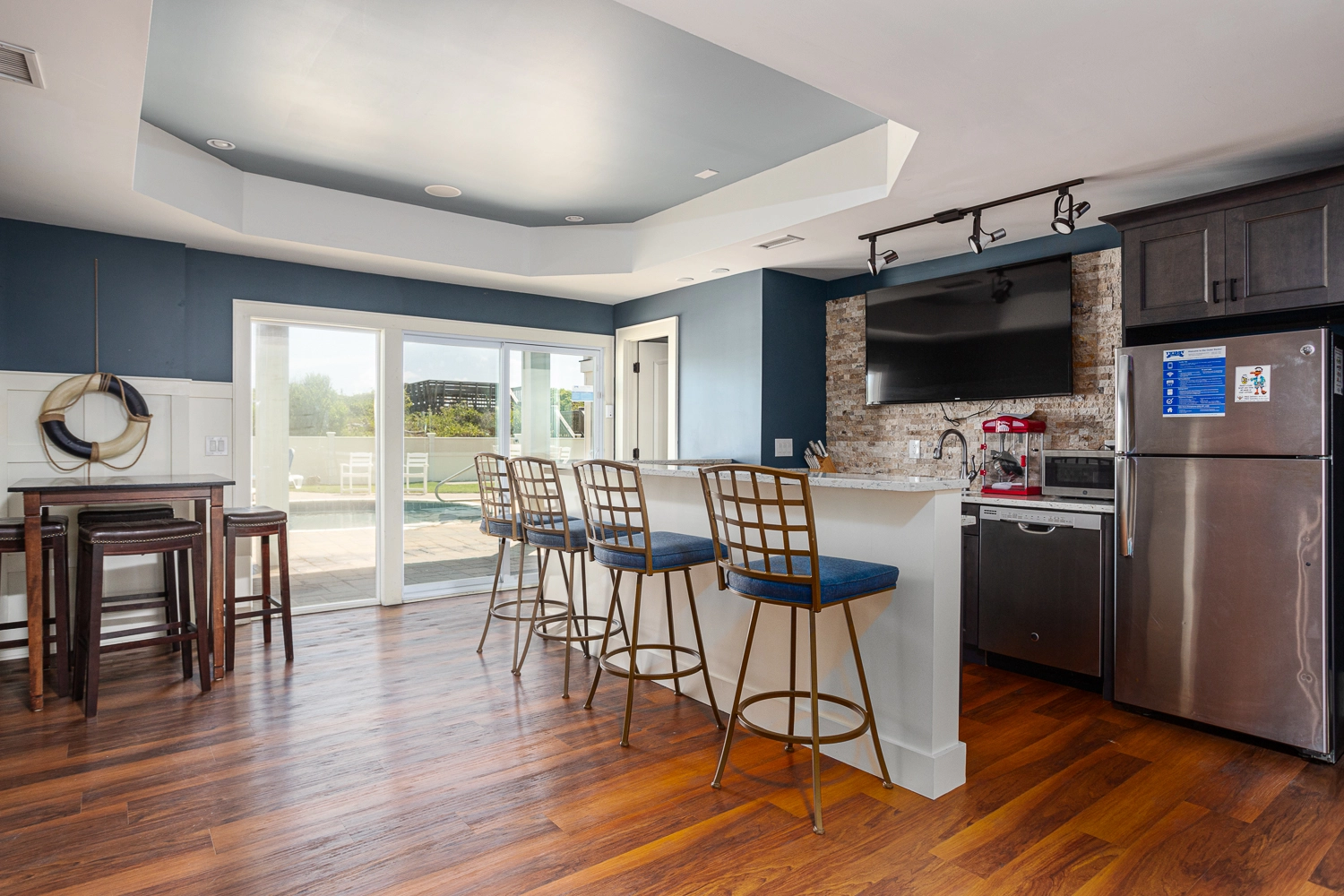 "The new pool wet bar! The new mini bar downstairs and all the abundance of very nice plastic wear to drink and eat with! Very safe considering the pool which was extremely convenient for my younger children because it was shallow on each end and went at a gentle slope to the middle which was not too deep! And all of the games in the garage especially the arcade game with all the many games like frogger and galaga! And the elevator was extremely convenient. The movie theater was more impressive than I expected!"