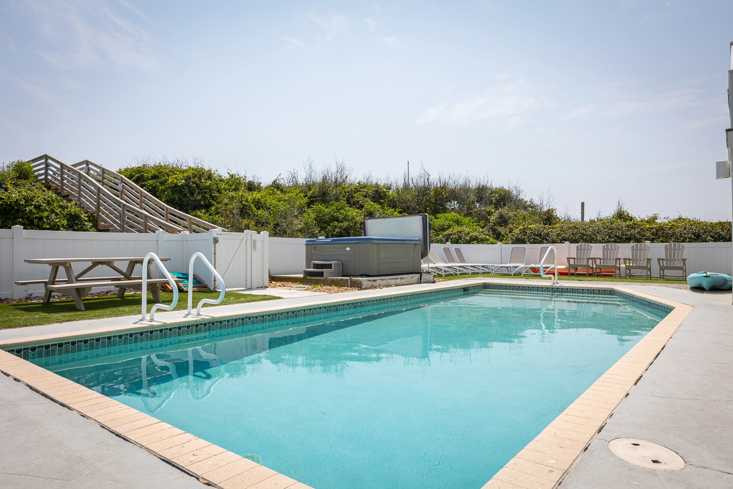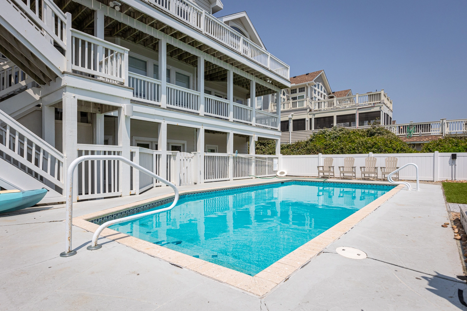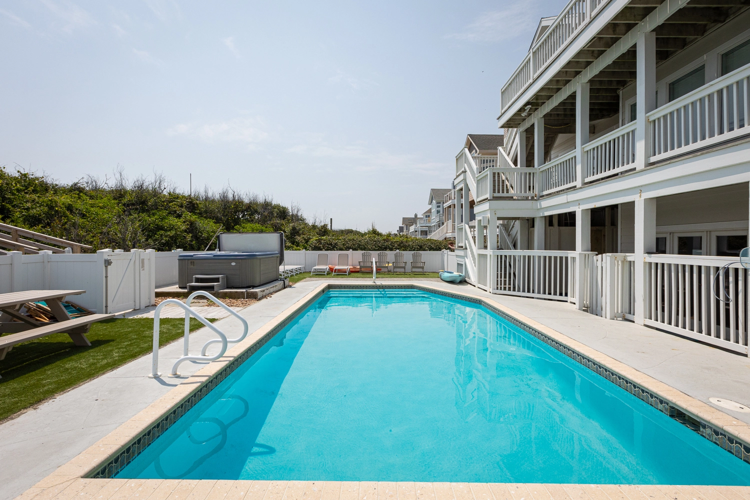 "We loved the house. It was perfect. Bedrooms and bathrooms were great, everything was nice, kitchen was perfect for large groups. We were sad there wasn’t cornhole boards and wished the pool had a deeper end, but it worked out great. Beach access was amazing."